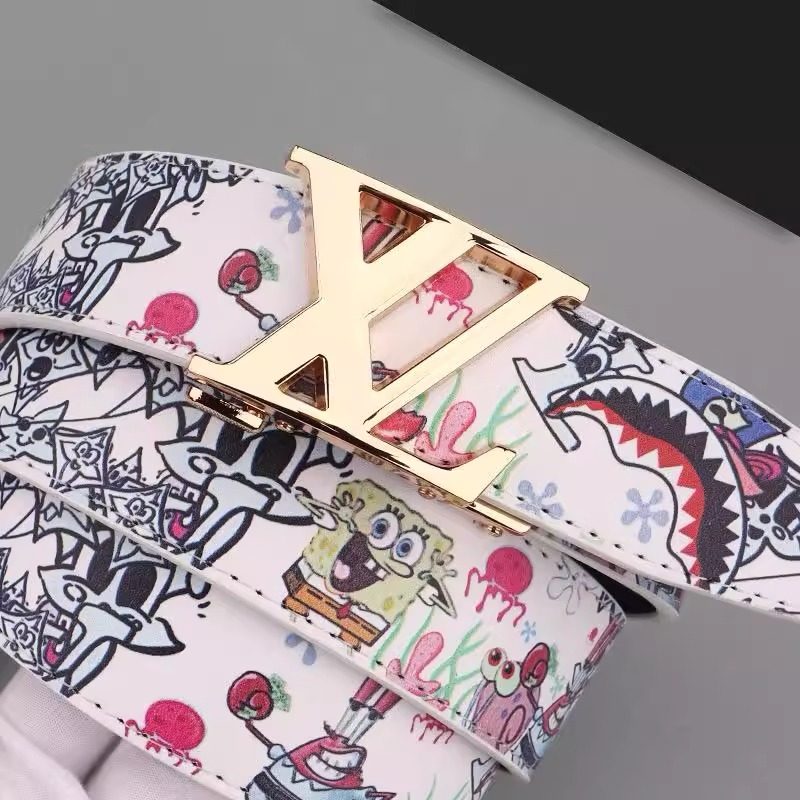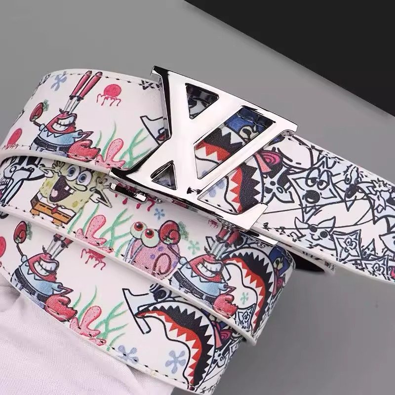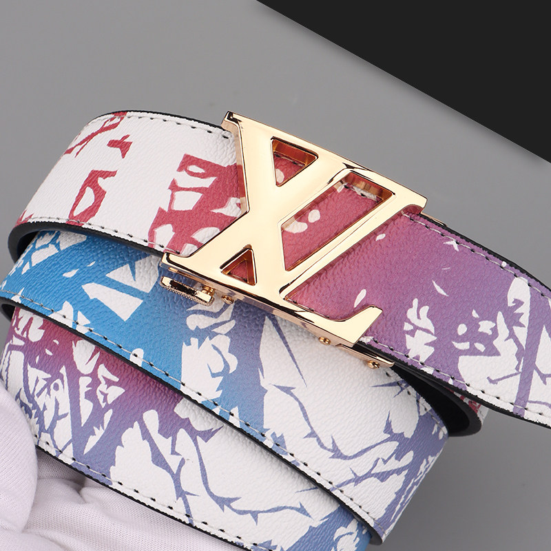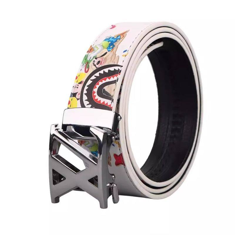 皮带男潮流学生真皮百搭卡槽涂鸦自动扣腰带牛仔裤网红同款