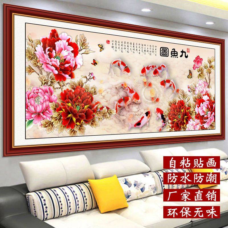 卧室床头背靠金山装饰画客厅挂画自粘中式沙发背景墙贴画壁画贴纸