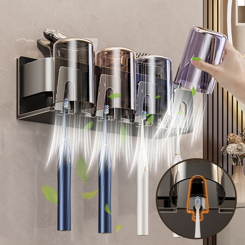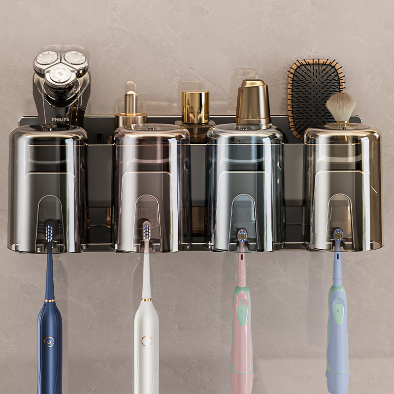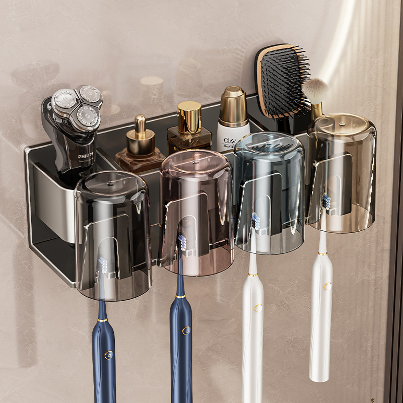 卫生间牙刷置物架电动吹风机支架家庭洗漱台壁挂式漱口杯牙具架子