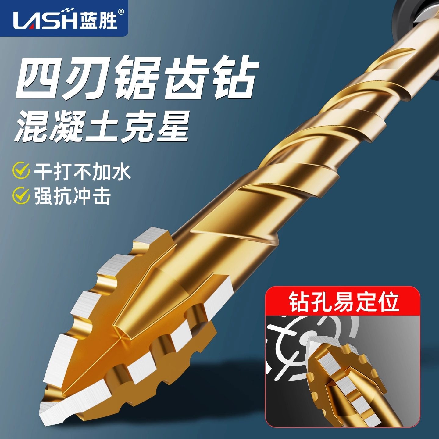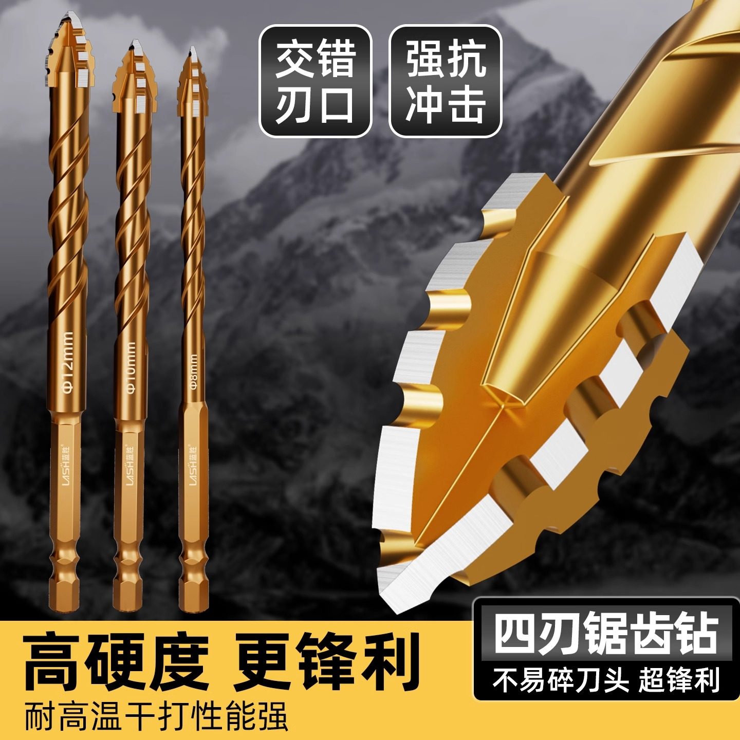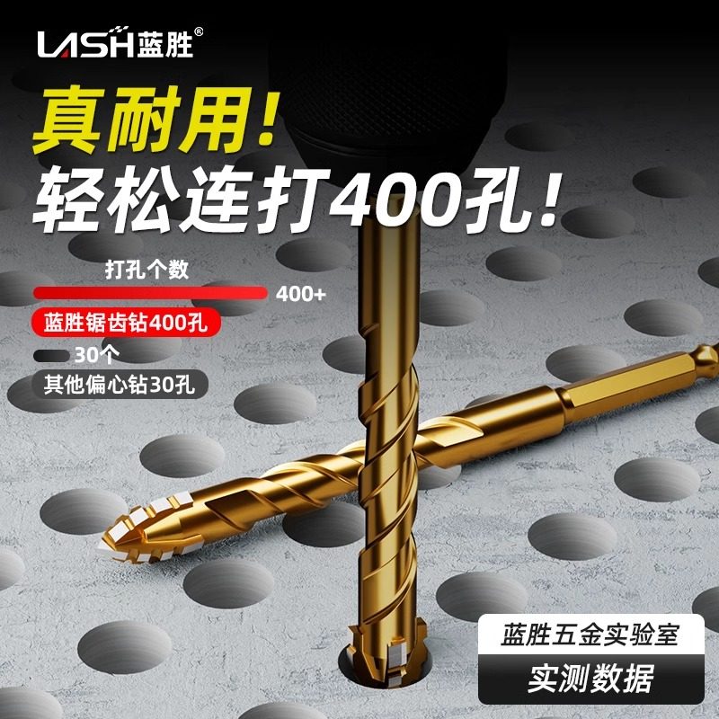 蓝胜四刃锯齿偏心钻头瓷砖打孔混凝土超硬专用电钻高硬度干打霸王