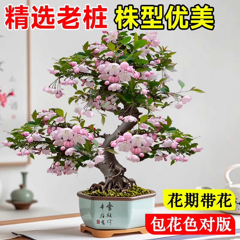 垂丝海棠花盆栽室内植物四季开花卉带花苞重瓣长寿冠树苗老桩盆景
