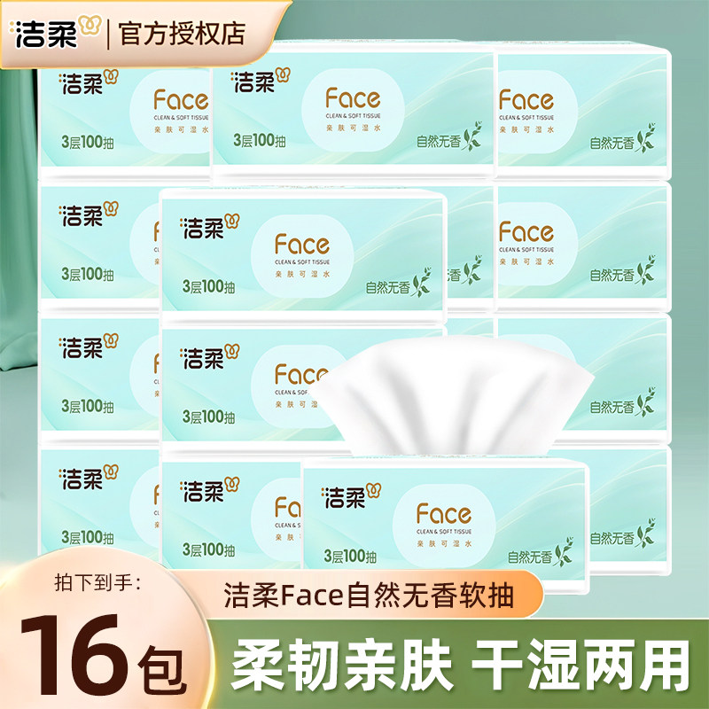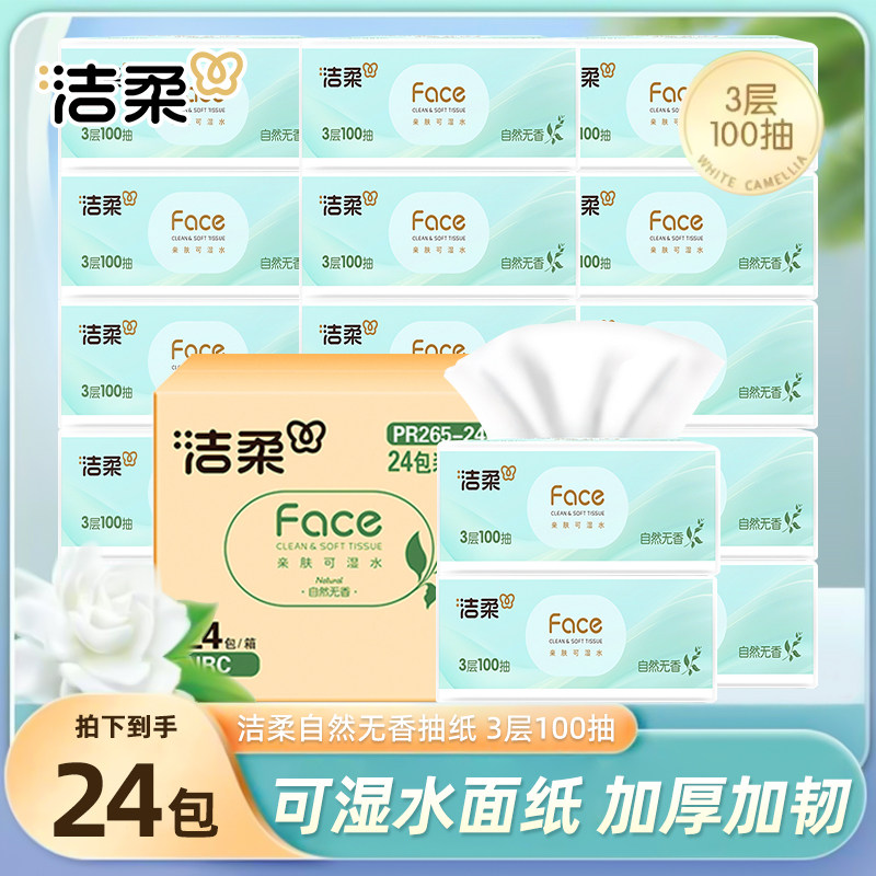 洁柔抽纸纸巾3层白茶无香家用大包可湿水面巾纸餐巾纸卫生纸纸抽