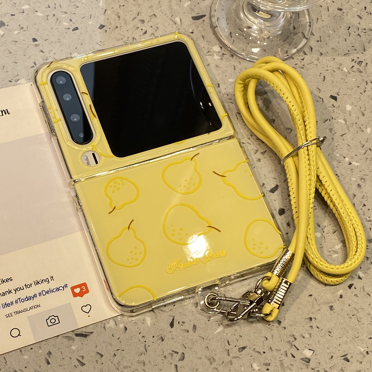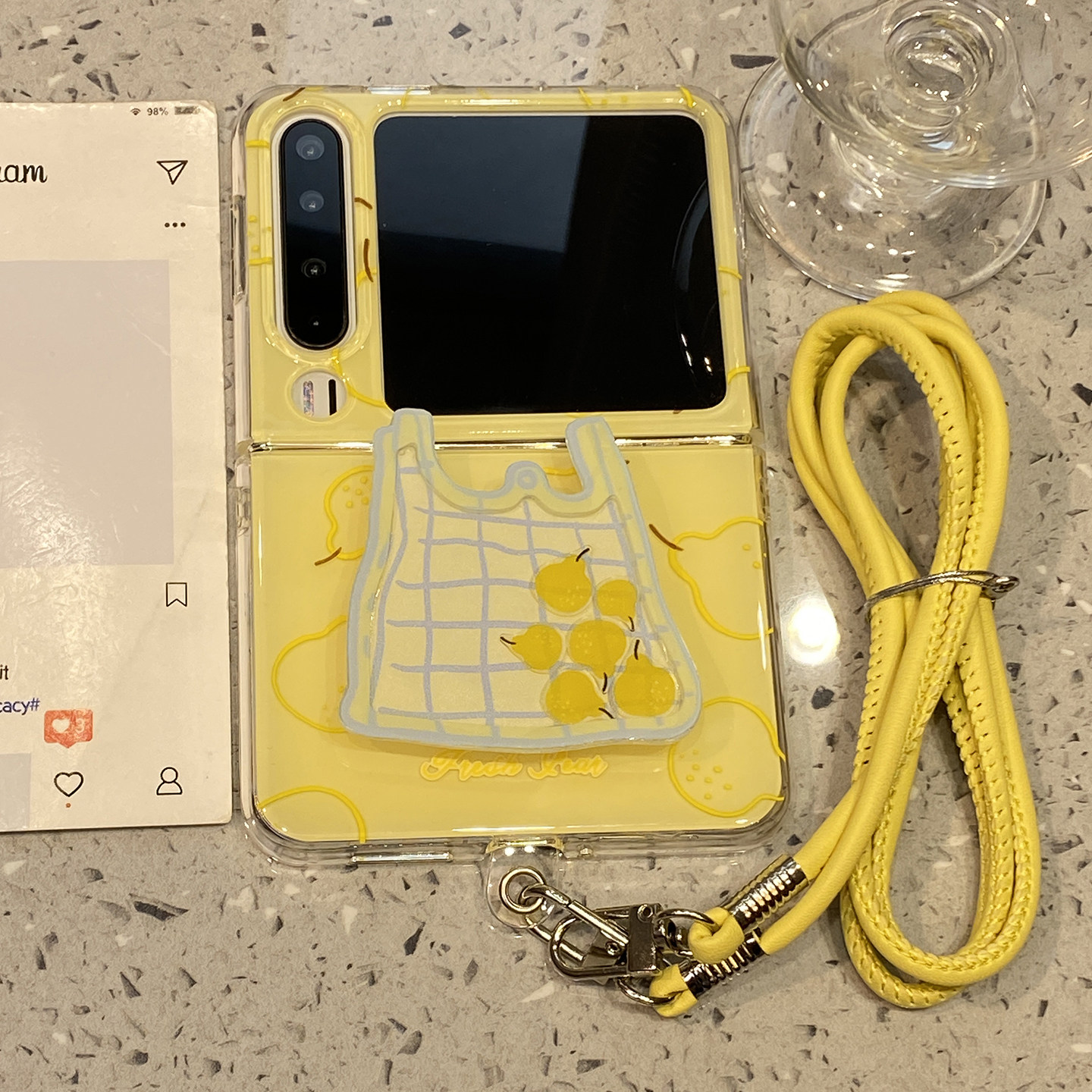 简约雪梨草莓支架适用华为purax折叠屏手机壳p50外壳Pocket2小米mixflip2三星zflip7斜跨6挂绳5/pura/x典藏版