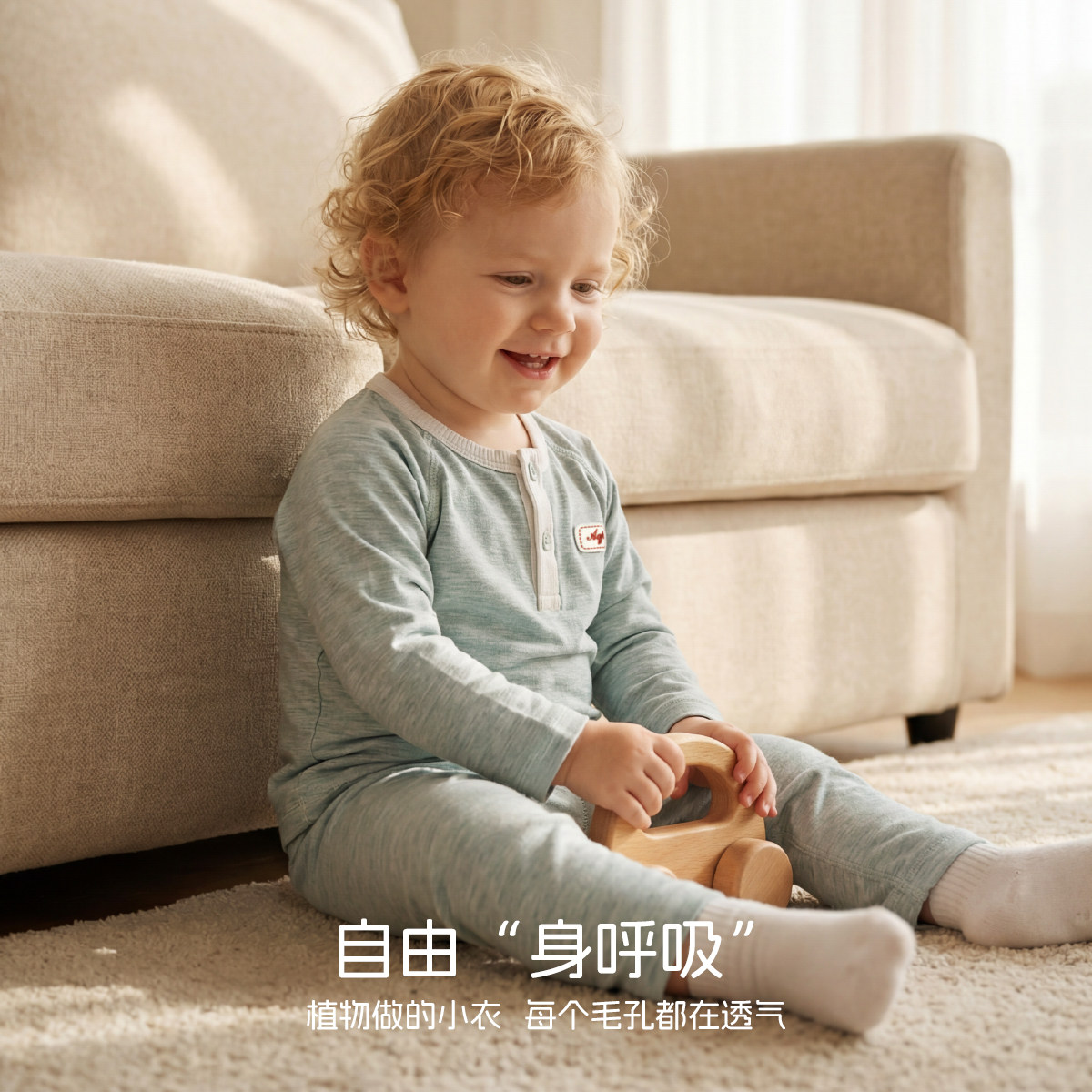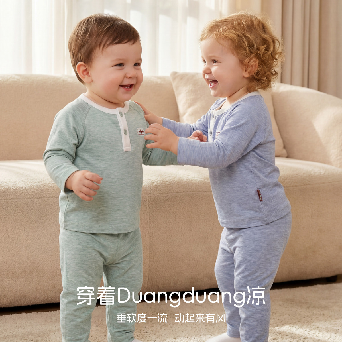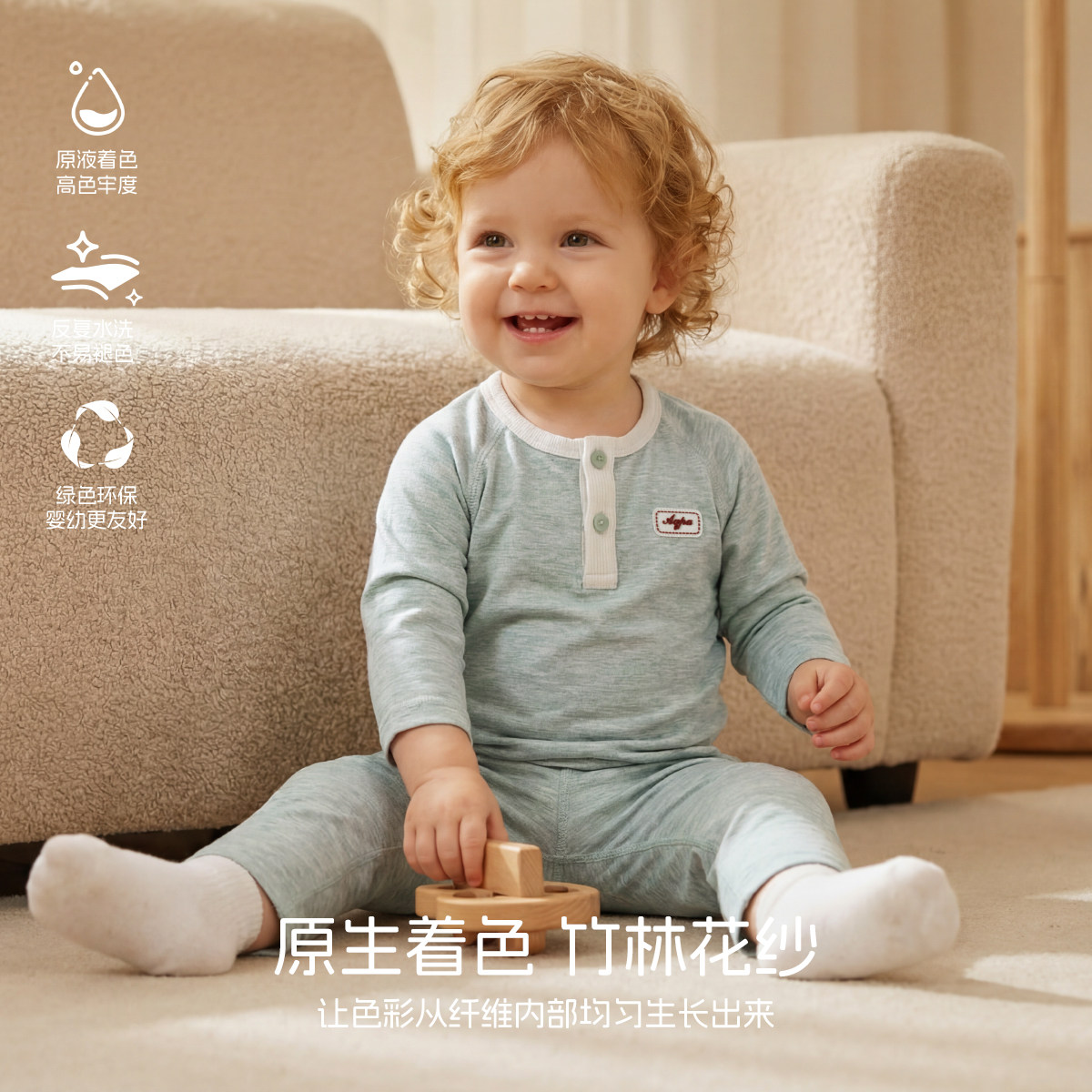 [草木纱织]aqpa爱帕婴儿套装弹力竹纤维长袖空调服宝宝秋衣裤打底