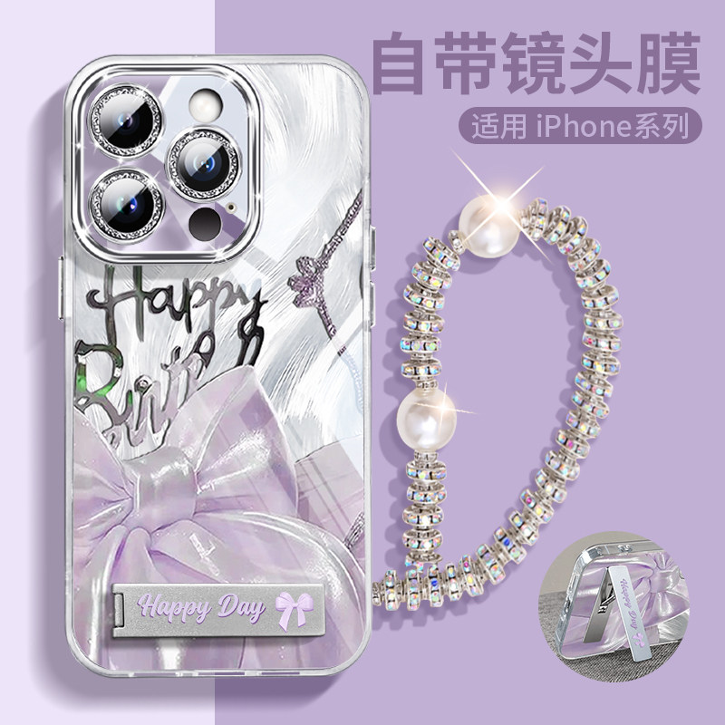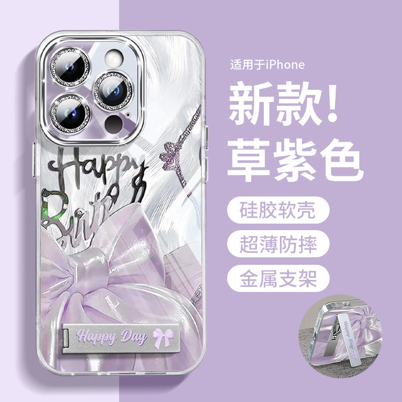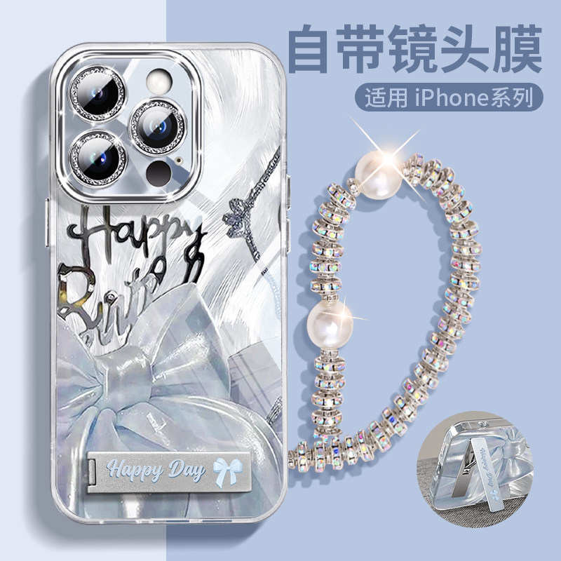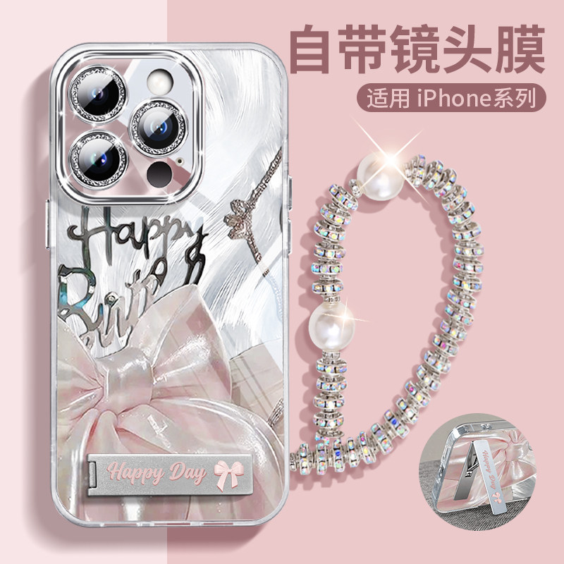ins绸缎蝴蝶结折叠支架适用iPhone17promax手机壳苹果16pro女款15全包14plus链条13镜头膜12气质11防摔保护套