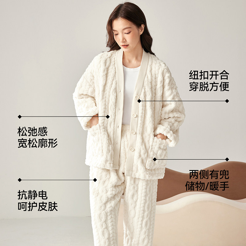 冬季珊瑚绒男士睡衣三层夹棉加厚加绒法兰绒秋冬款家居服保暖套装