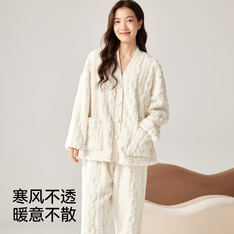 睡衣女冬季加厚保暖珊瑚绒套装2025年新款卡通秋冬款法兰绒家居服