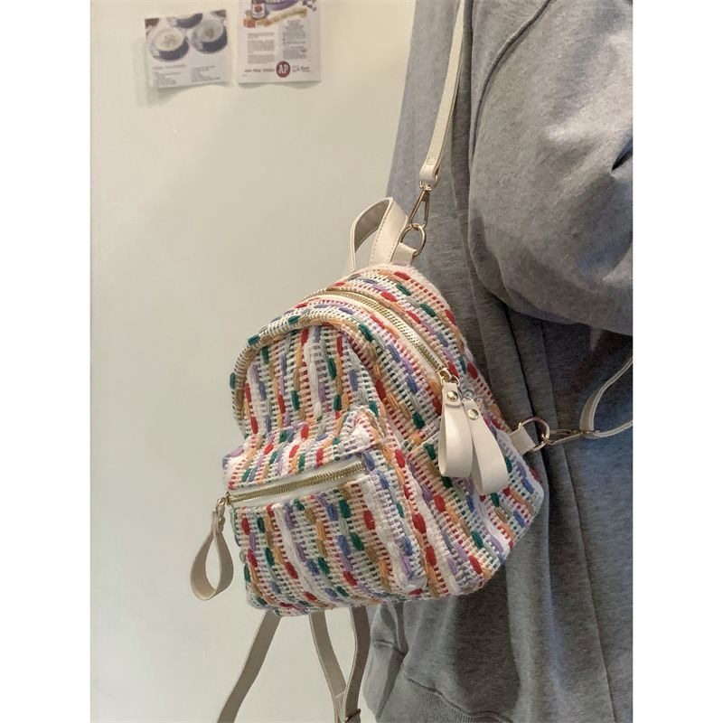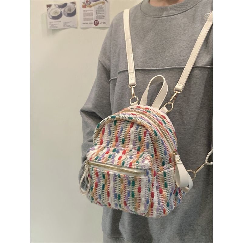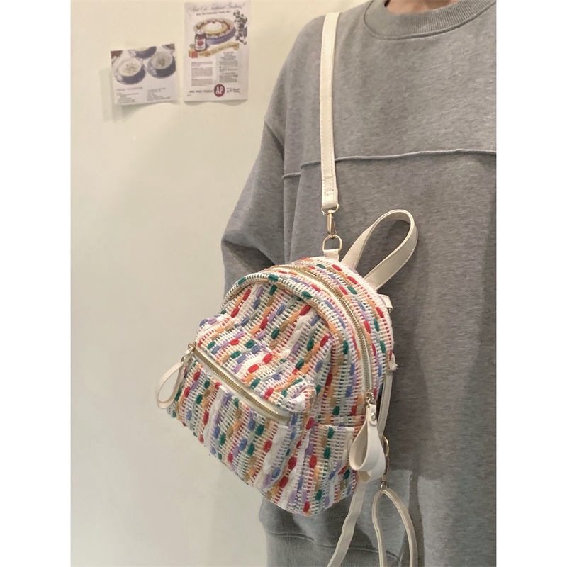 彩虹针织网红双肩包春夏新款感小众旅行背包时尚迷你小包