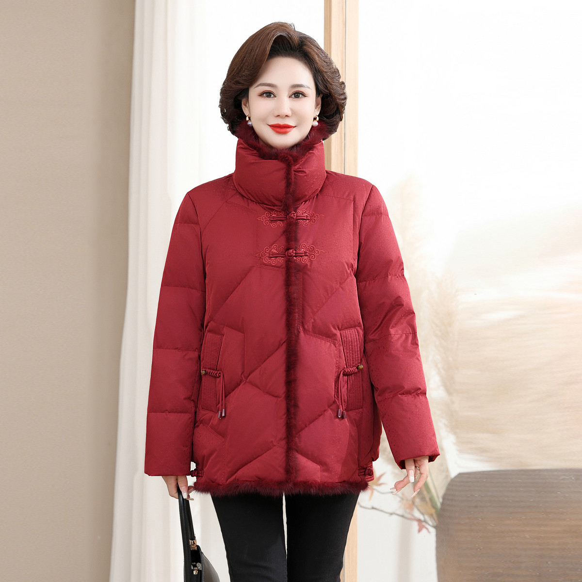 雪中飞2025冬新款女士妈妈款短款立领羽绒服纯色设计新中式百搭