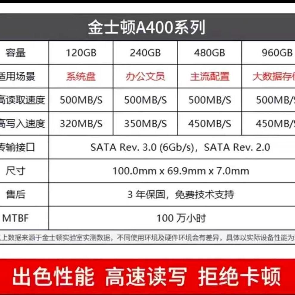 Kingston/金士顿 金士顿固态硬盘240G480G2.5寸笔记本台式电脑SSD