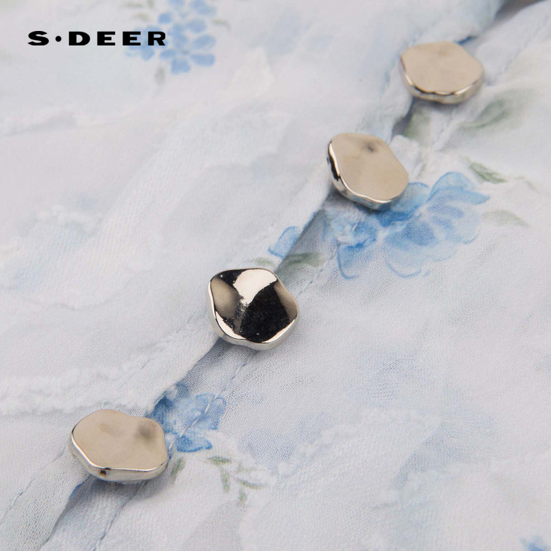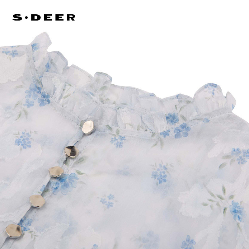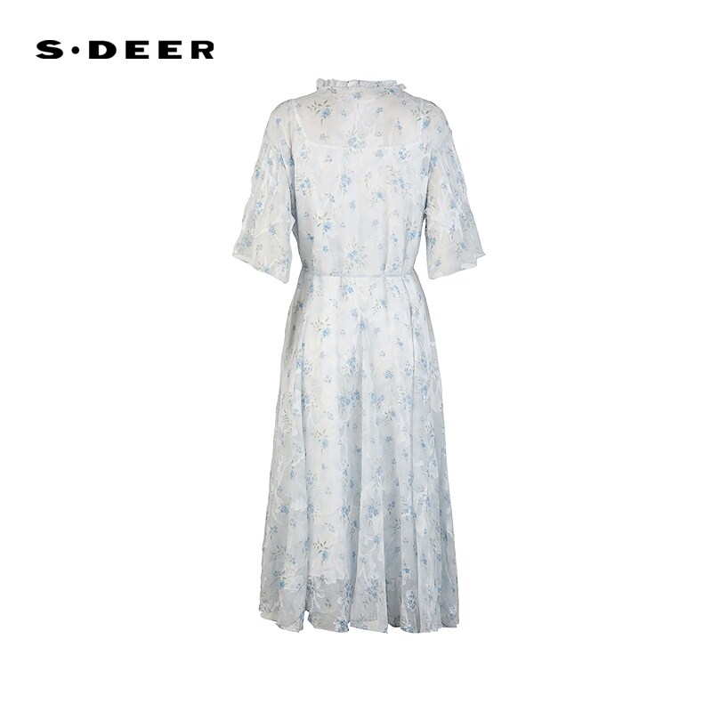 sdeer圣迪奥女装木耳边圆领收腰碎花吊带两件套连衣裙S252Z12D5