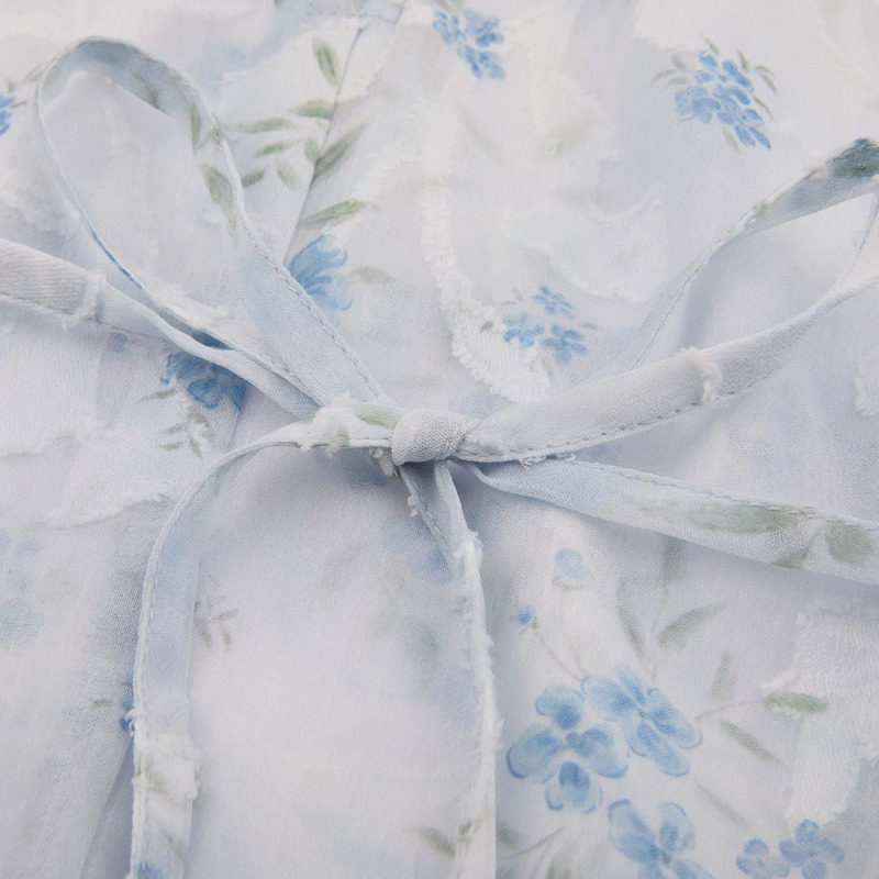 雨菲2025夏新款碎花v领飞飞边清冷大美人设计感显瘦斜裁连衣裙女