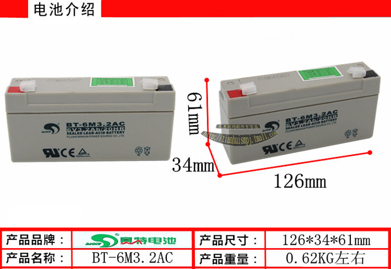 6V3AH蓄电池盒6V3.2AH战神环宇四轮定位仪器电瓶电子称电池蓄电池