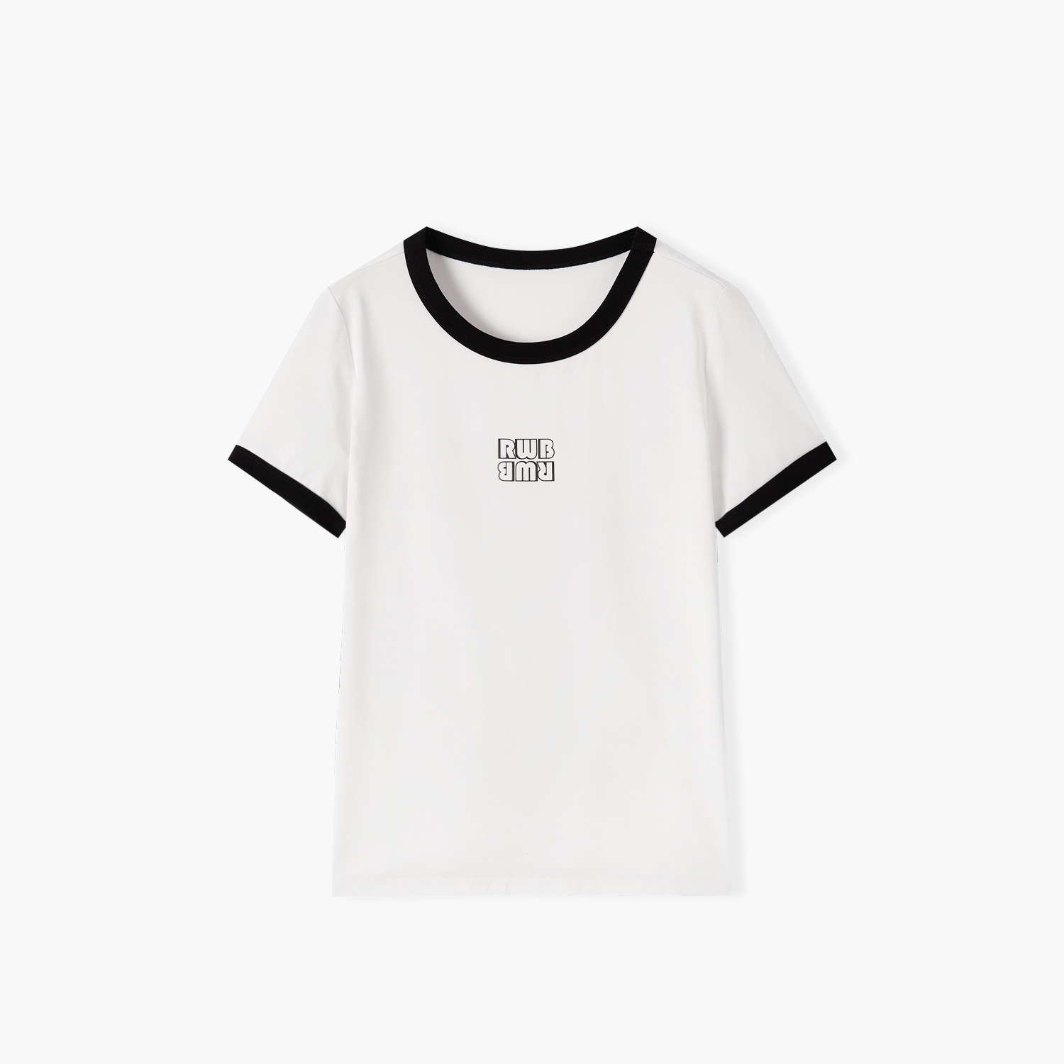 凉感T森马短袖T恤女短款修身正肩收腰2025夏新款上衣百搭白色体恤