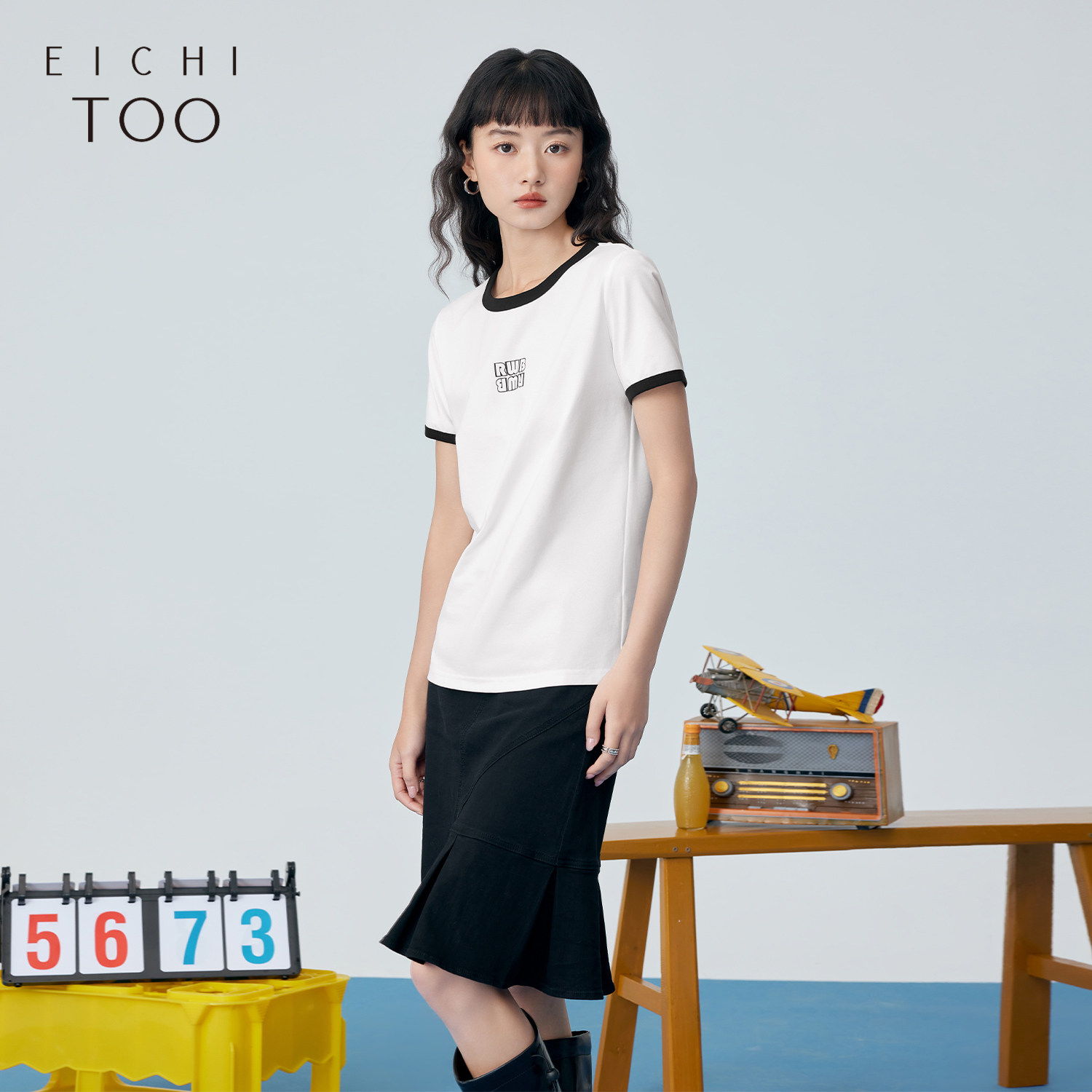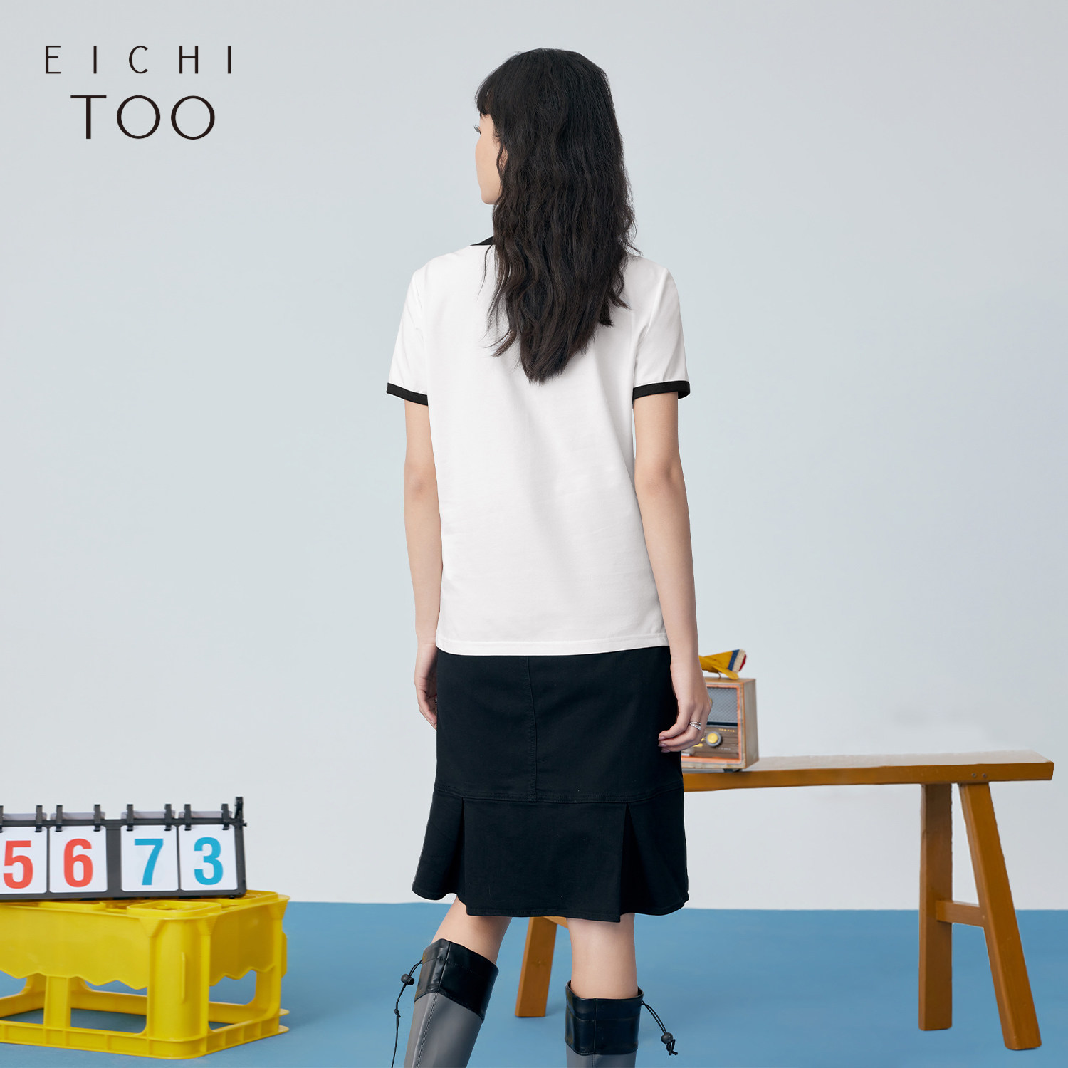 陈都灵丨凉感T森马短袖T恤女修身纯色基础夏季新款圆领白色女装