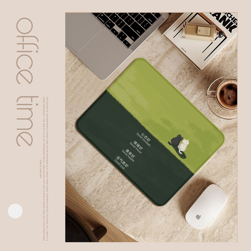 治愈文字简约小号鼠标垫女生高颜值办公室电脑桌垫绿色锁边防滑垫