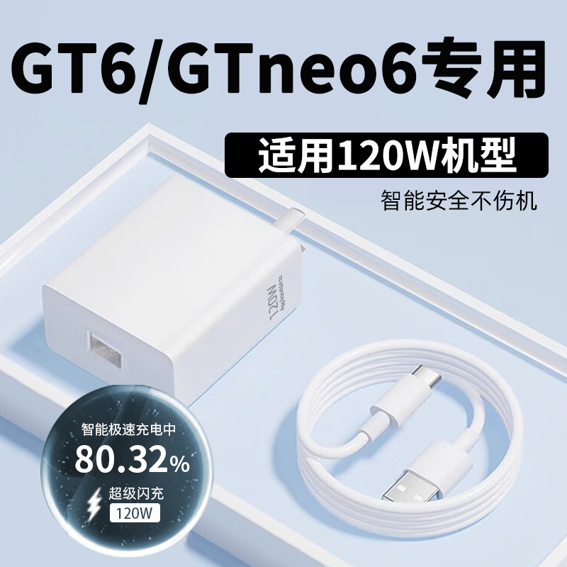 适用真我GT6光速秒充适用120w充电器GTneo6闪充头Realme手机充电插头gt6充电头原套装通用加长秒充数据线