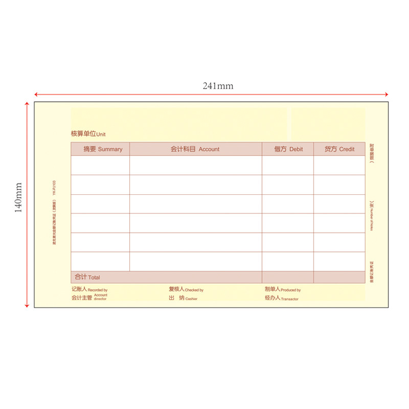 凌龙记账凭证纸YK-PJ103软件财务会计通用品241x140凭证纸