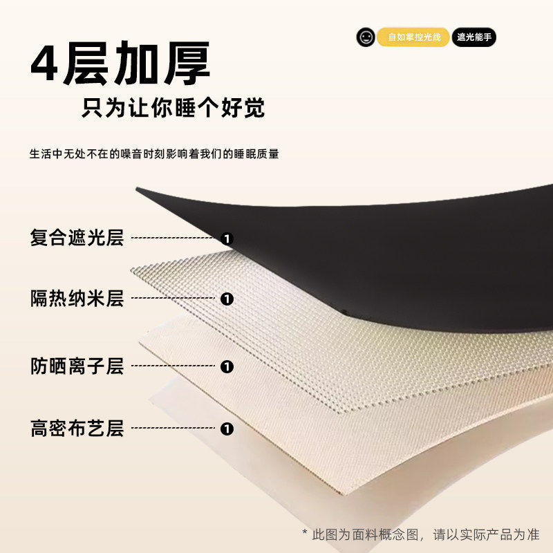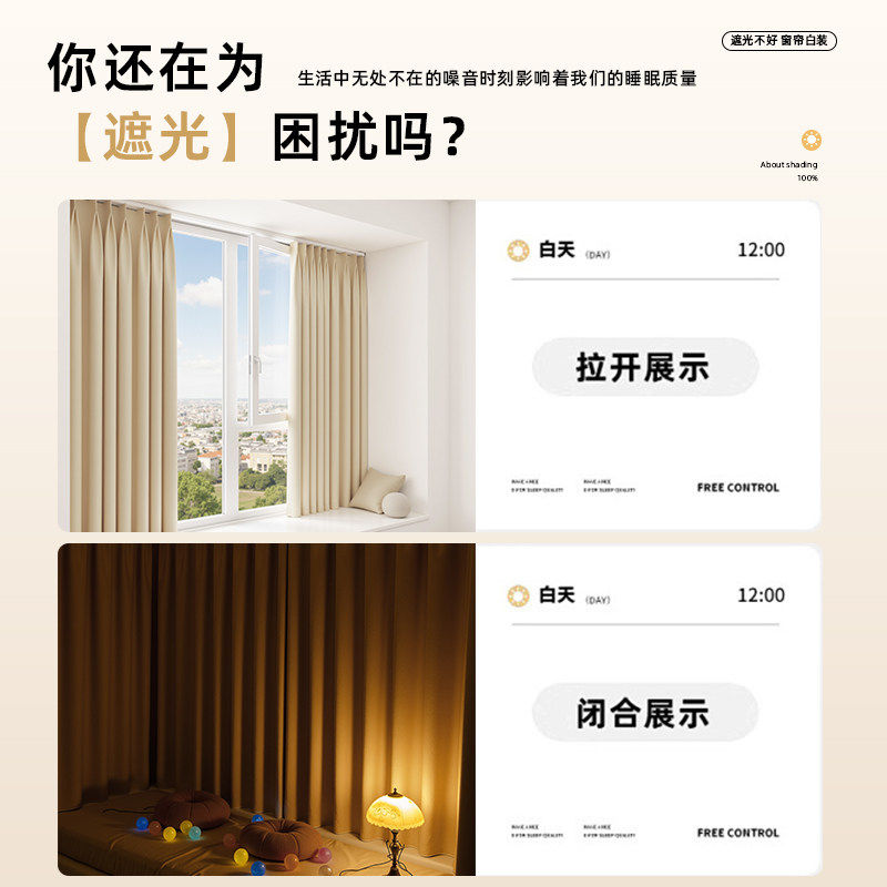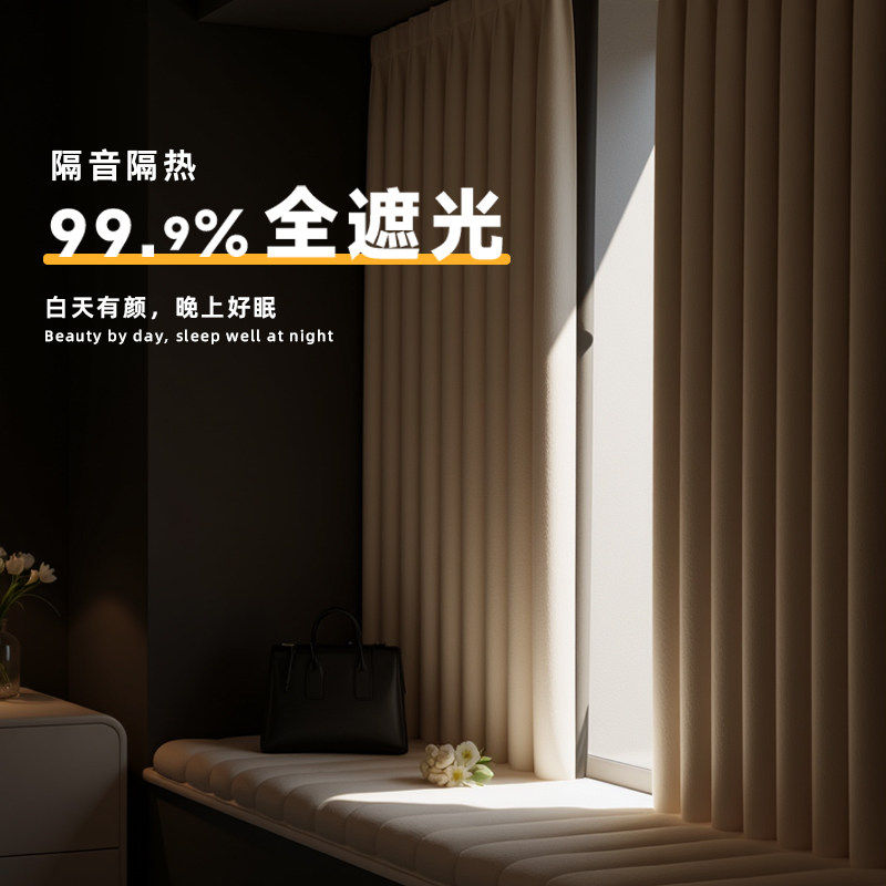 全遮光窗帘高级感免打孔安装办公室卧室飘窗阳台遮阳伸缩杆2026新