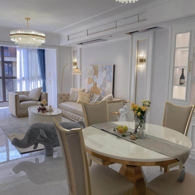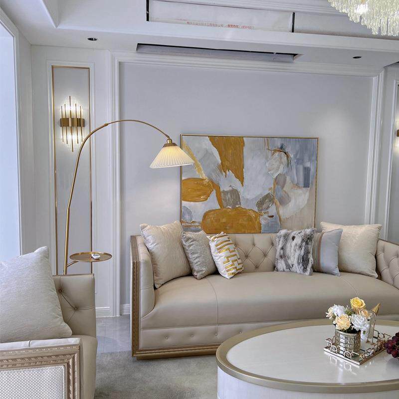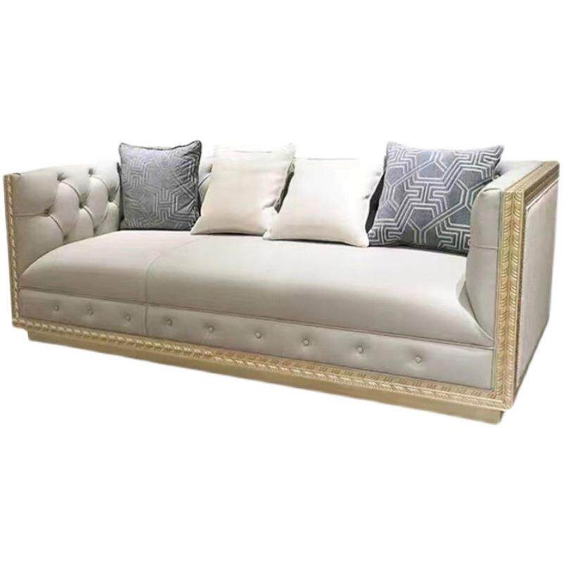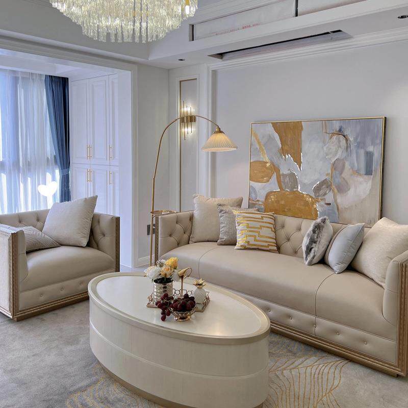 奶油风三人沙发美式轻奢现代法式样板间客厅皮艺家具组合实木欧式