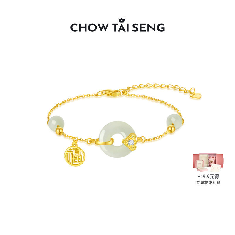周大生福禄平安扣手链女和田玉手饰S925银新中式生日礼物送女友