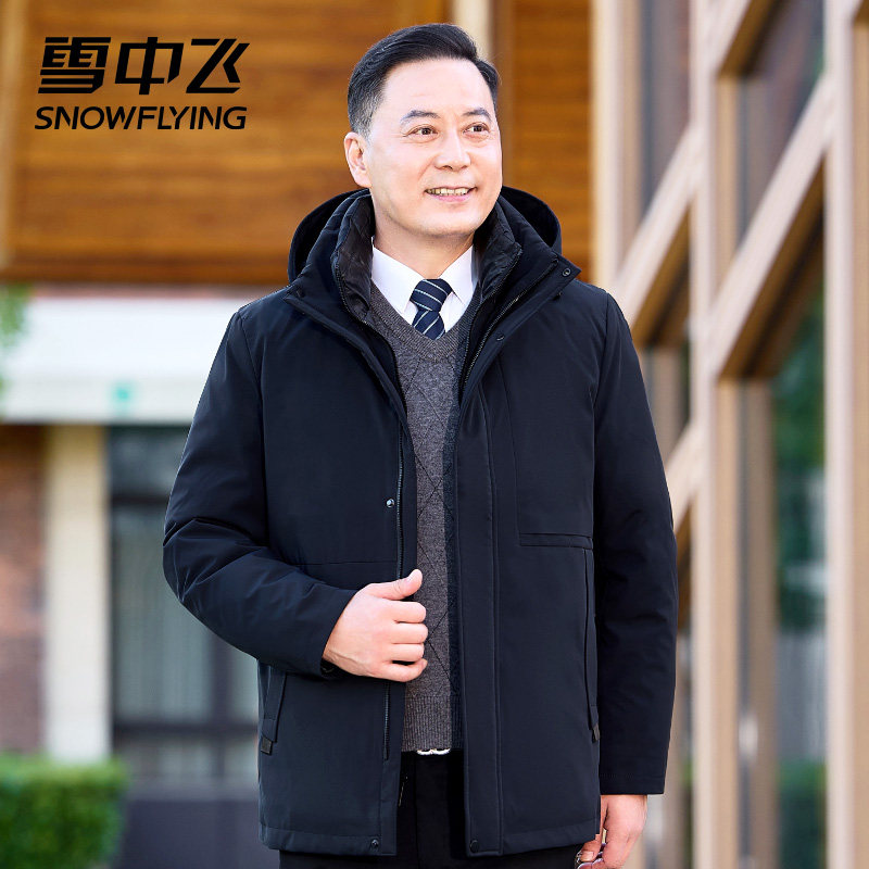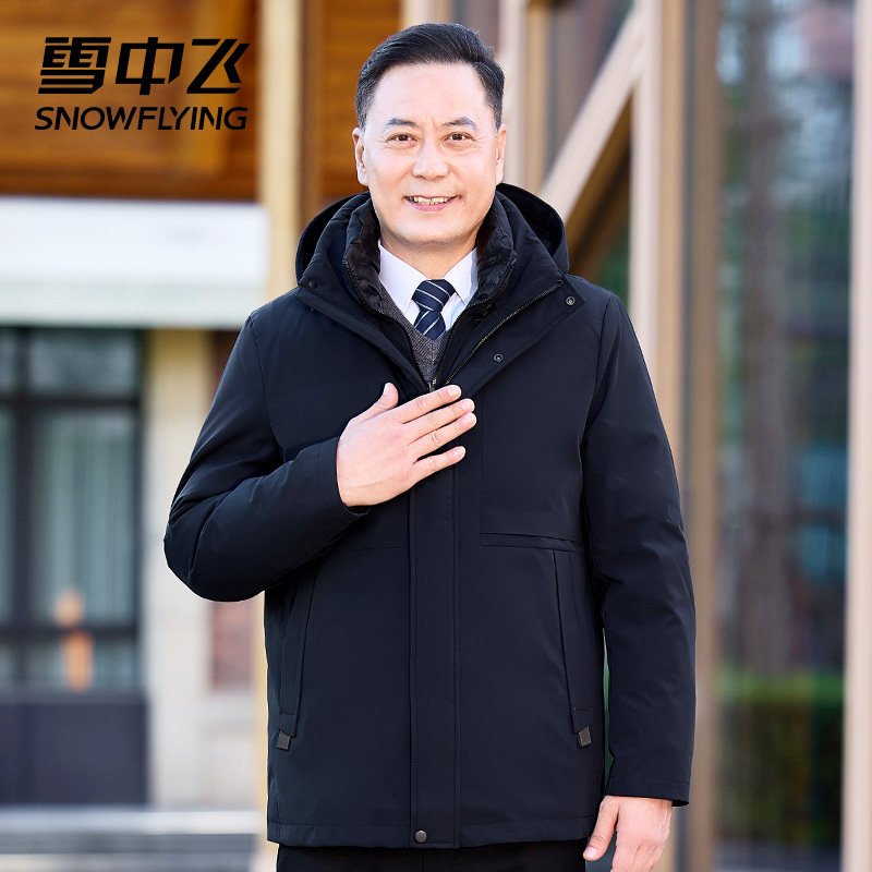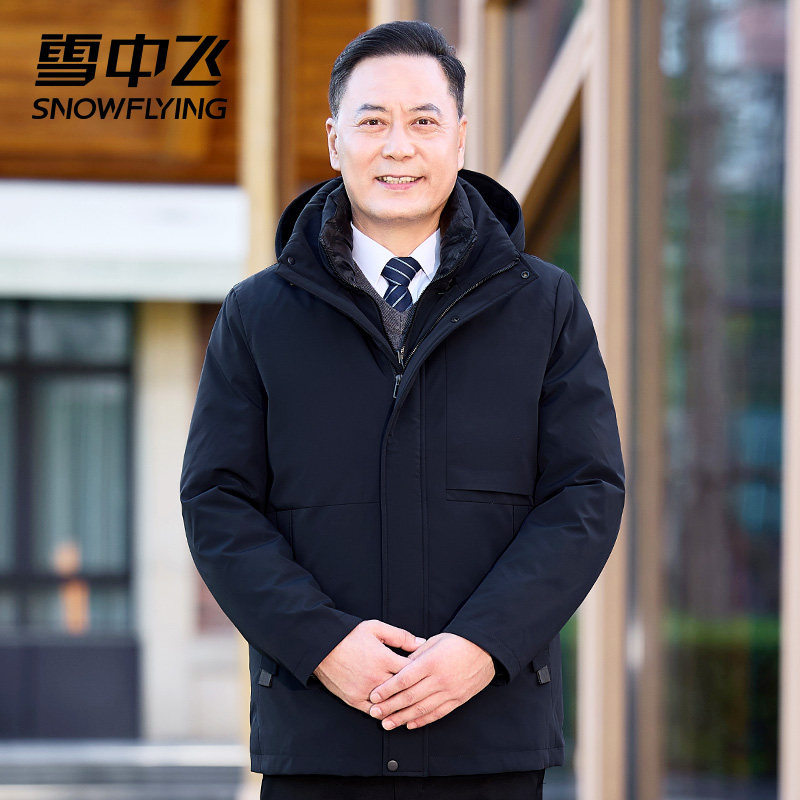 雪中飞男士羽绒服中老年爸爸装加厚保暖90鹅绒内胆可脱卸冬季外套