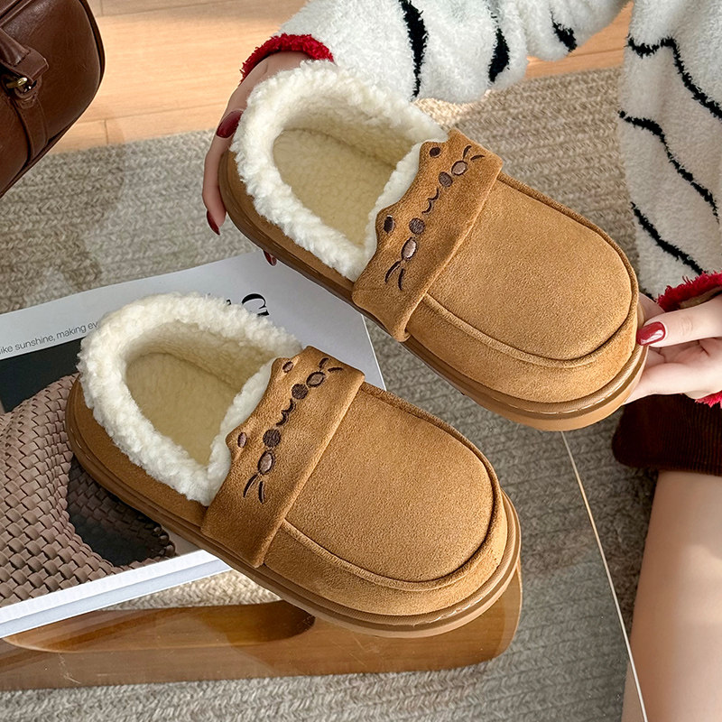2026新款翻半包跟棉拖加绒保暖情侣外穿毛毛绒厚底防滑居家棉拖鞋