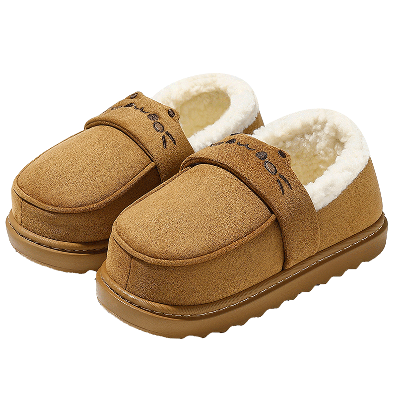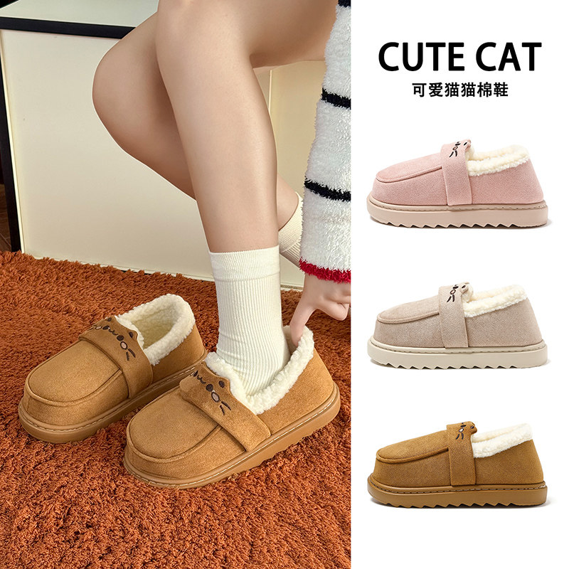 韩式面包棉拖鞋女士冬季2025新款居家包跟厚底保暖可爱小猫乐福鞋