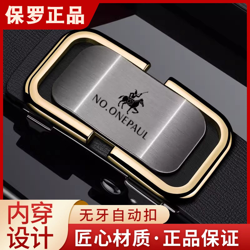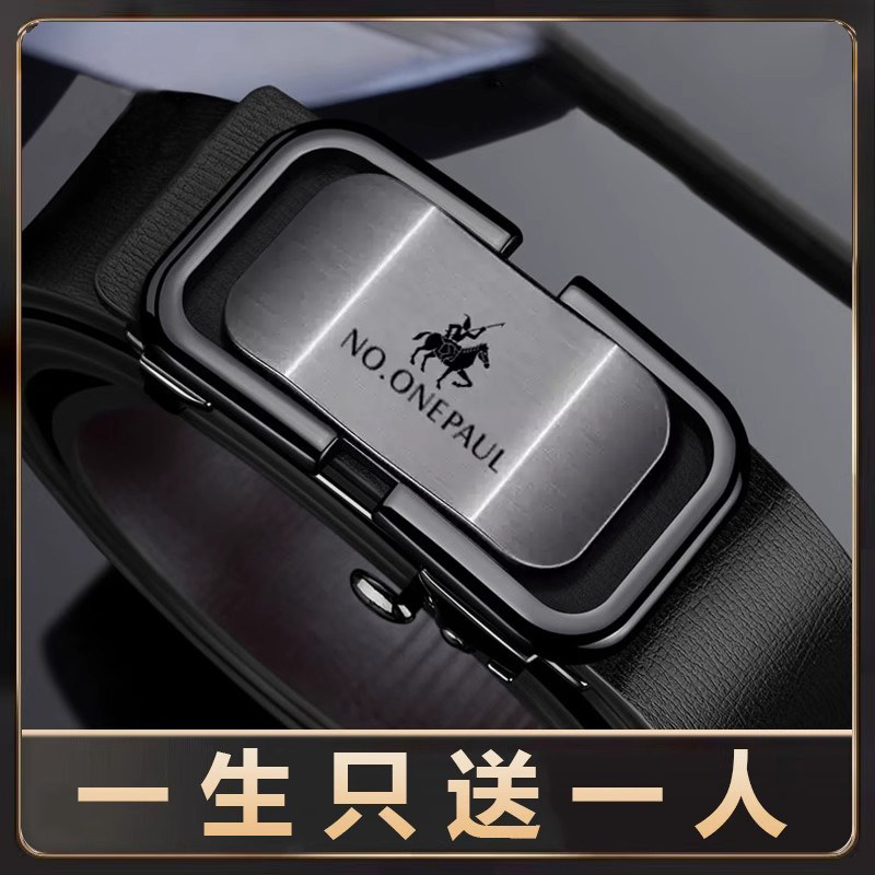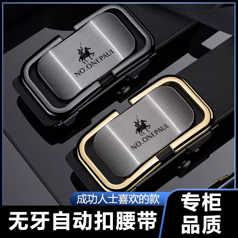 保罗男士皮带真皮纯牛皮无牙自动扣商务高档腰带年轻人裤带潮送礼