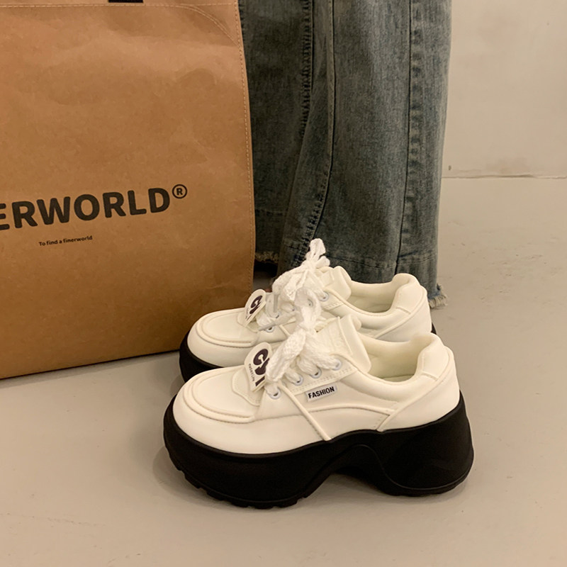 爆款松糕厚底老爹鞋女小个子增高2025新款秋季百搭运动休闲小白鞋