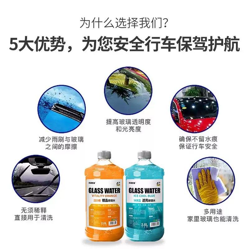 德国原液汽车玻璃水2L装防雨镀膜去油膜虫胶强力清洁除垢冬季防冻