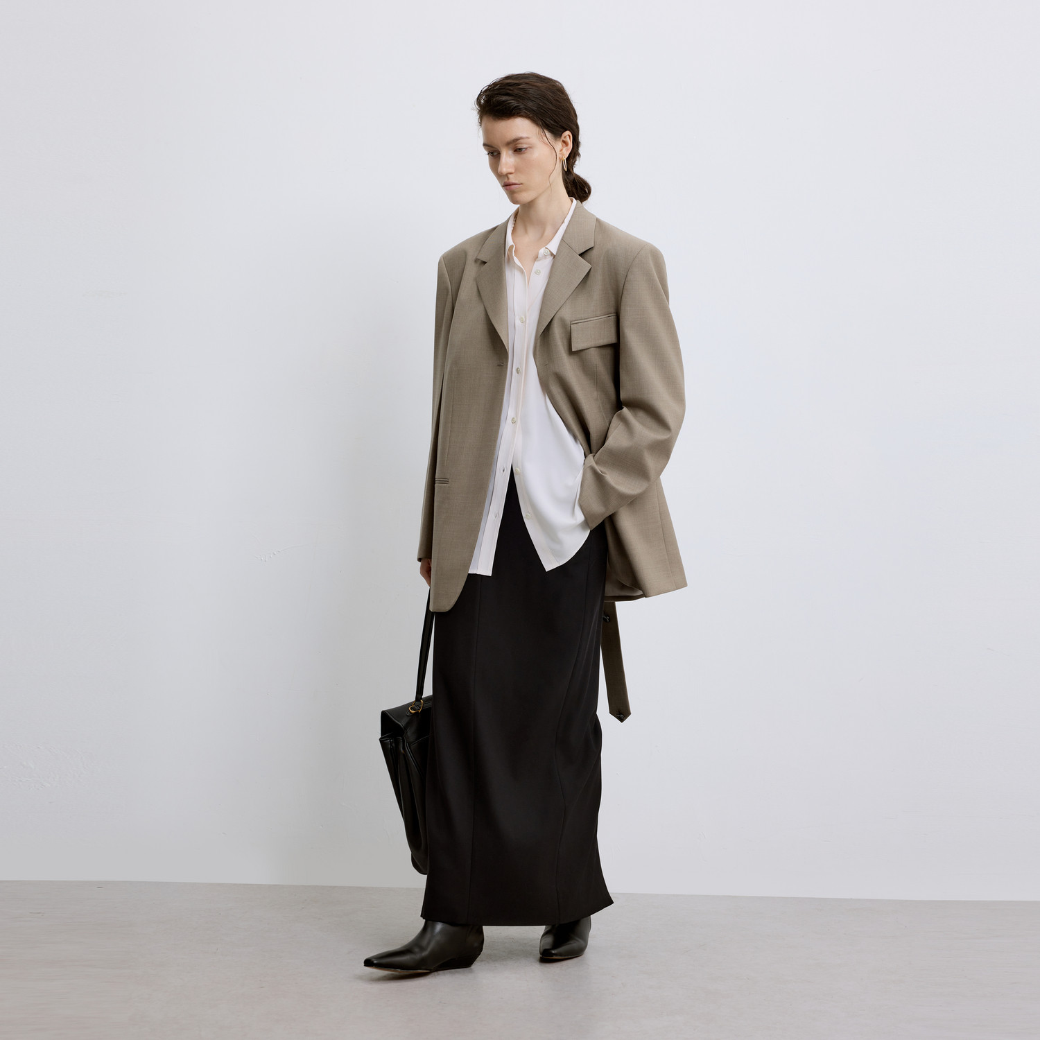 COCOBELLA高智感羊毛西装女秋冬新款廓形通勤毛呢外套SI3222