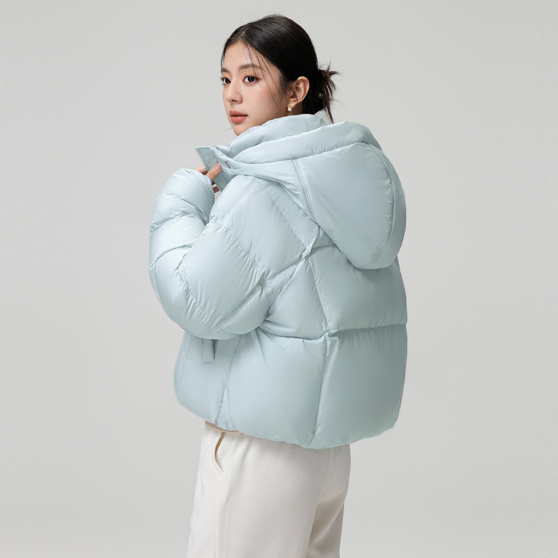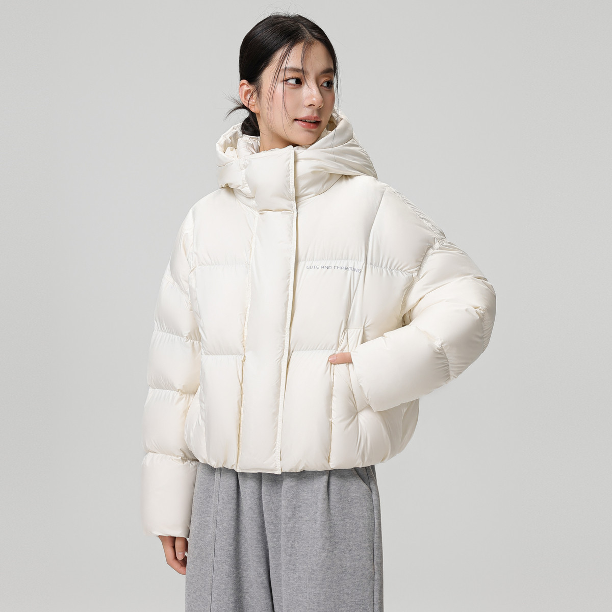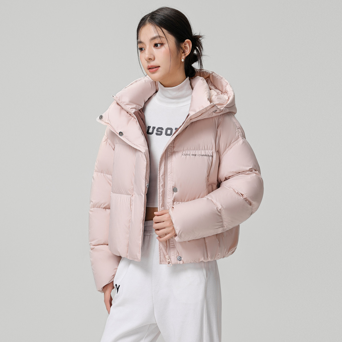 鸭鸭2025秋冬新款立领短款羽绒服小个子女冬多巴胺连帽可拆帽外套