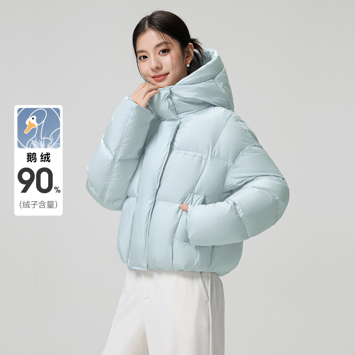 【鞠婧祎同款】鸭鸭2025年冬新款百搭短款女士纯色立领羽绒服外套