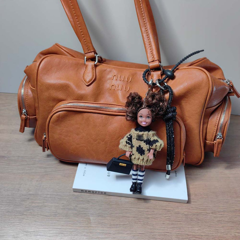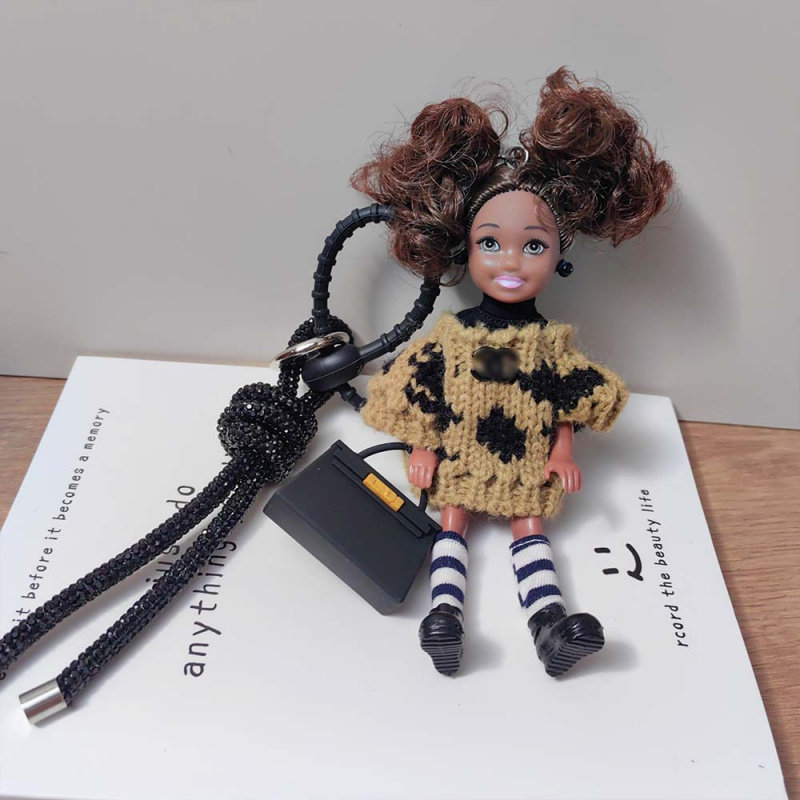 可爱黑皮芭比娃娃包包挂件 闪钻结钥匙扣 风高级感包包挂饰
