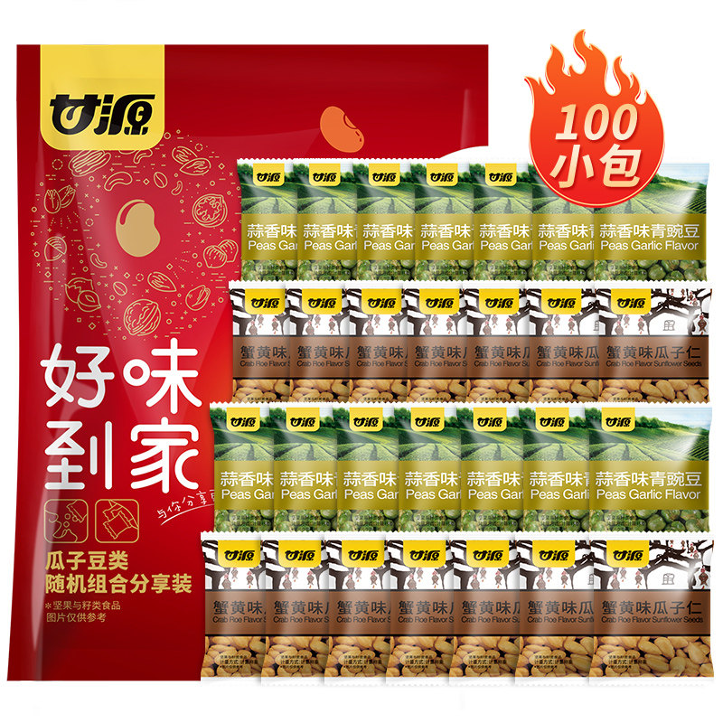 甘源808g中秋坚果零食礼包蒜香青豆蟹黄味瓜子仁内100小包分享装