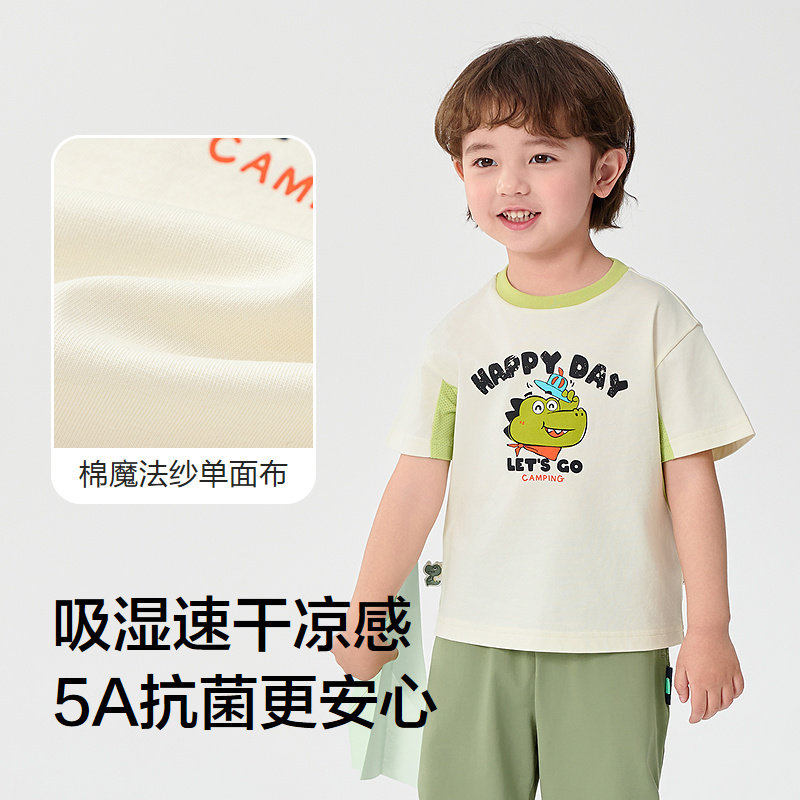 小鳄鱼印花T恤,吸湿速干凉感抗菌