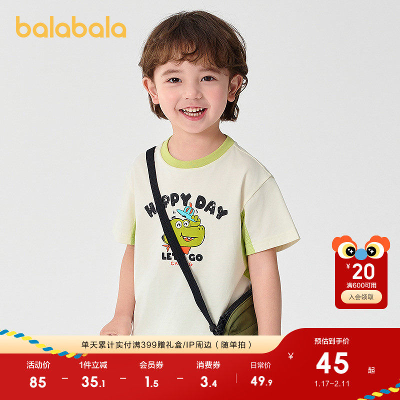 巴拉巴拉童装宝宝短袖T恤男童上衣儿童衣服2025新款夏装卡通萌趣