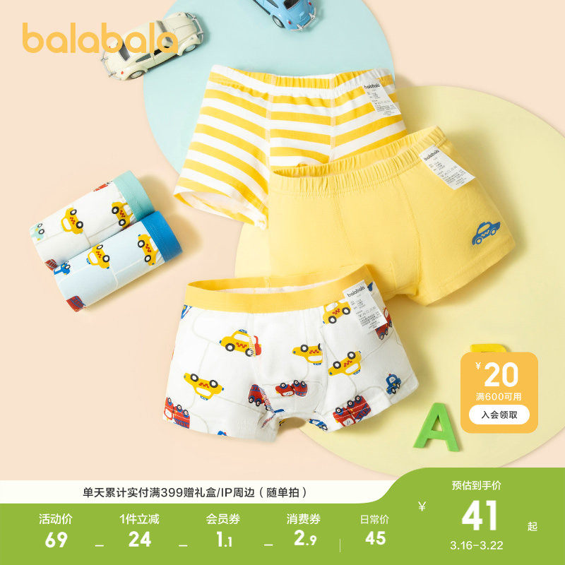 【balaOne】巴拉巴拉儿童内裤棉男童不夹pp抗菌裆四角短裤三条装
