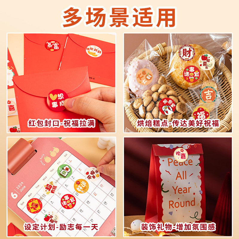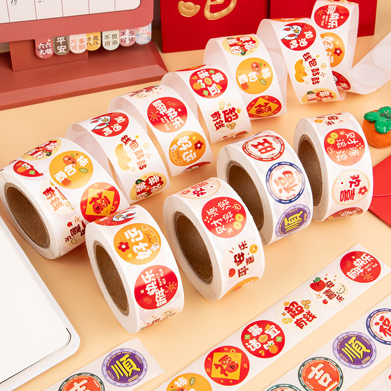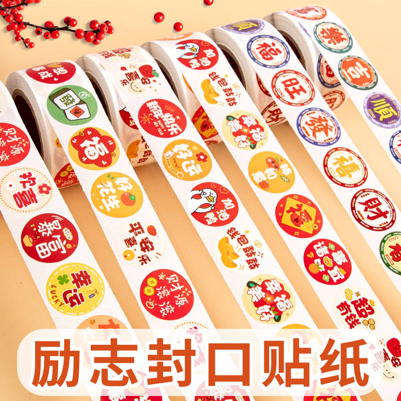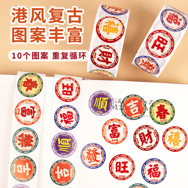 复古港风发财暴富贴纸手机后壳励志文字创意装饰小图案圆形福字封口贴中国风礼物包装袋礼品盒子ins风随心配