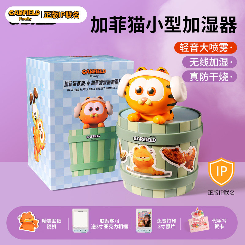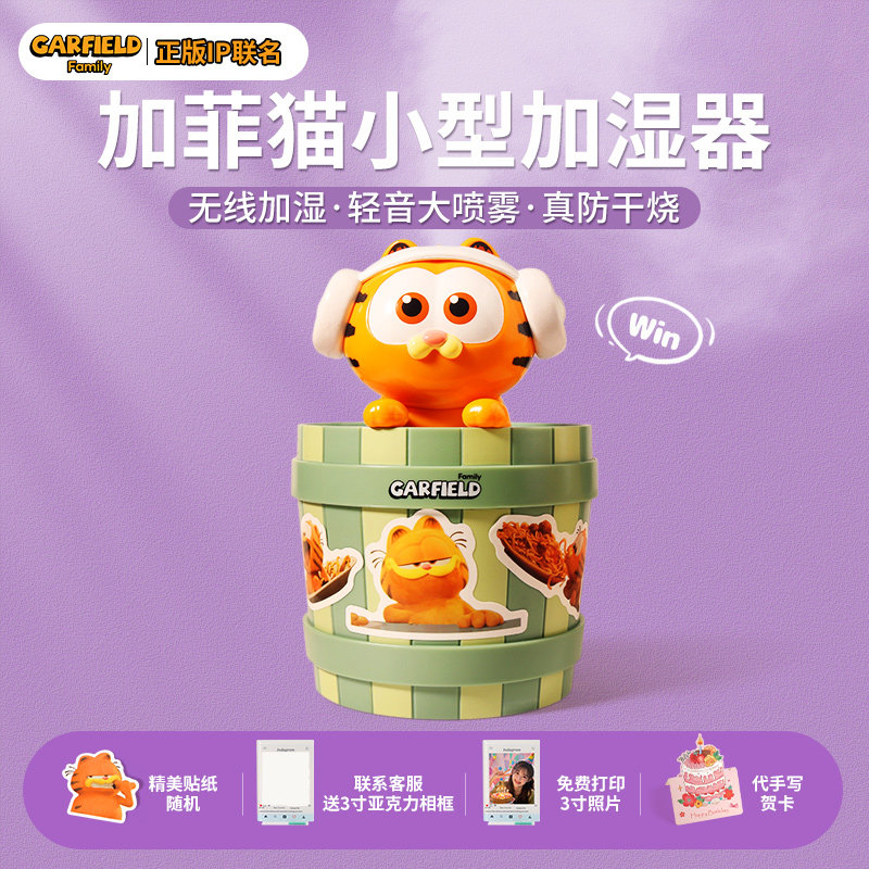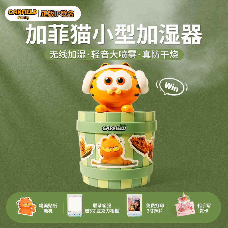 加菲猫加湿器小型usb便携式办公室桌面宿舍迷你学生无线充电家用静音卧室孕妇婴儿空气喷雾2026新款