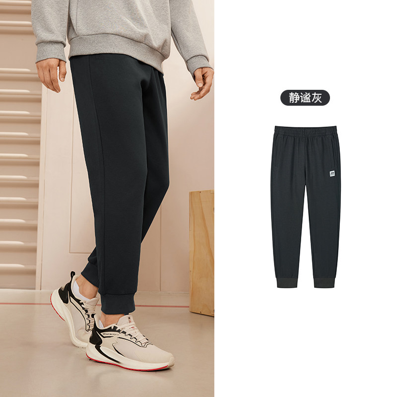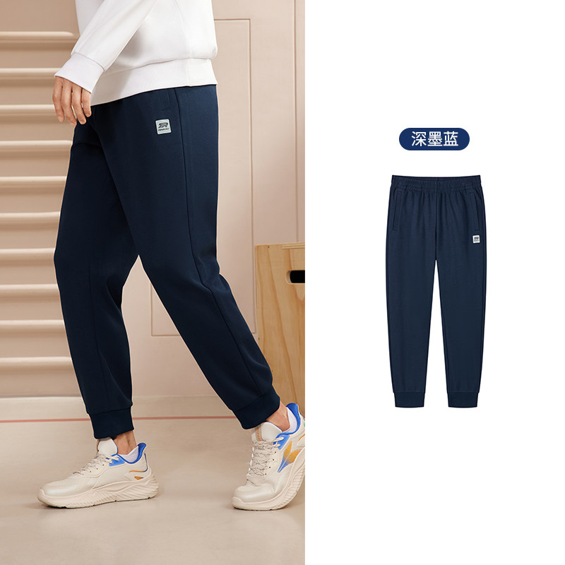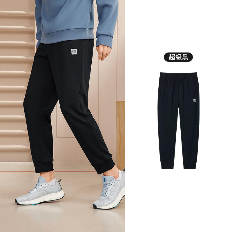 特步加绒卫裤男士加厚秋冬款裤子针织保暖裤直筒裤子休闲运动裤