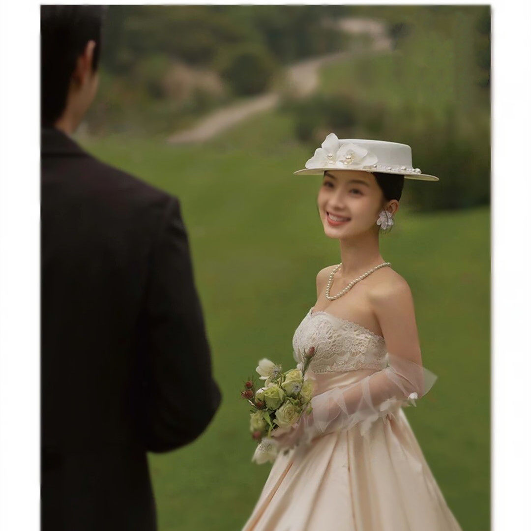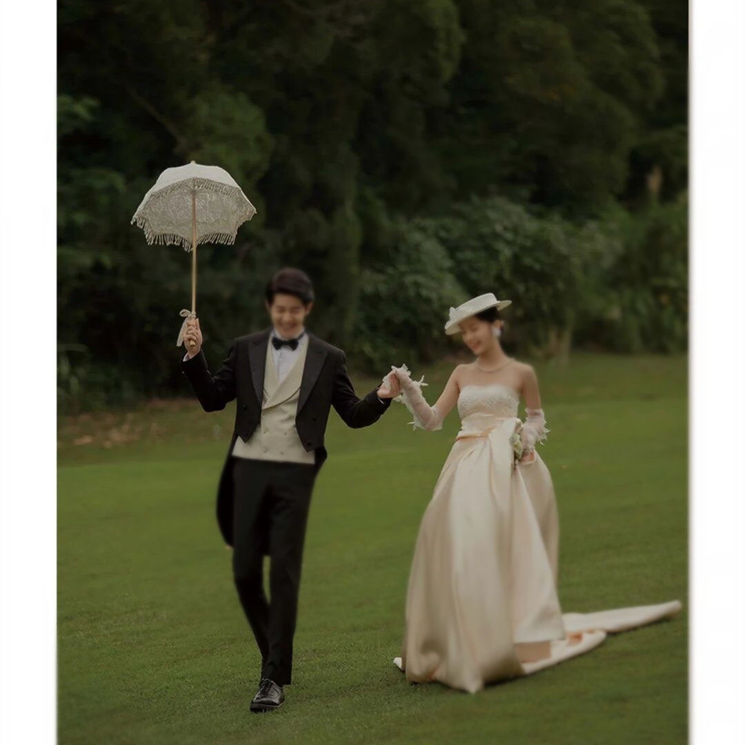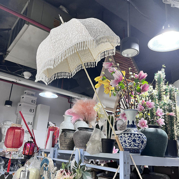 复古赫本风法式田园婚纱摄影主题道具 长柄古董伞 精致流苏蕾丝伞