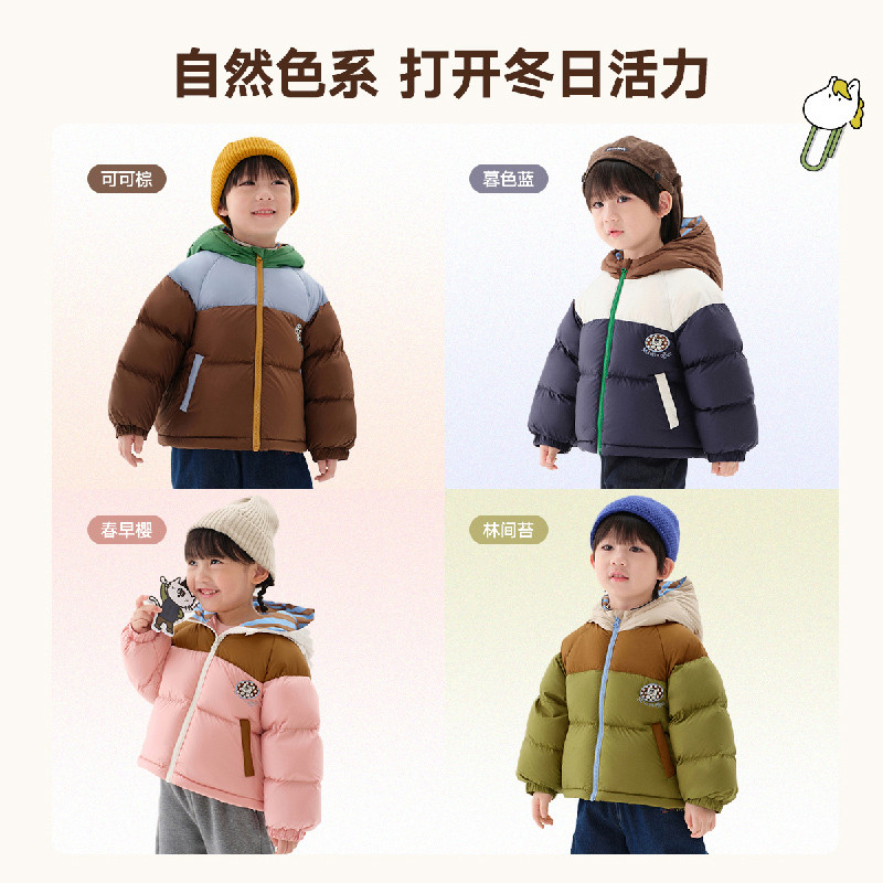 马拉丁童装儿童羽绒服冬装男女小童撞色趣味可爱短款羽绒服