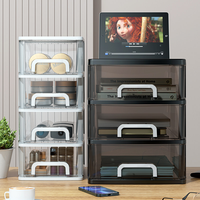桌面化妆品收纳盒子家用多层抽屉式收纳柜半透明置物架文具办公柜