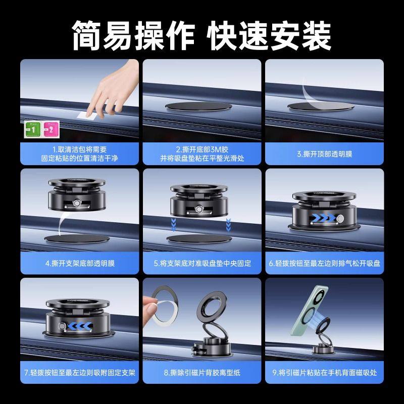 新款磁吸车载手机支架真空吸附仪表台汽车通用桌面多功能导航支架