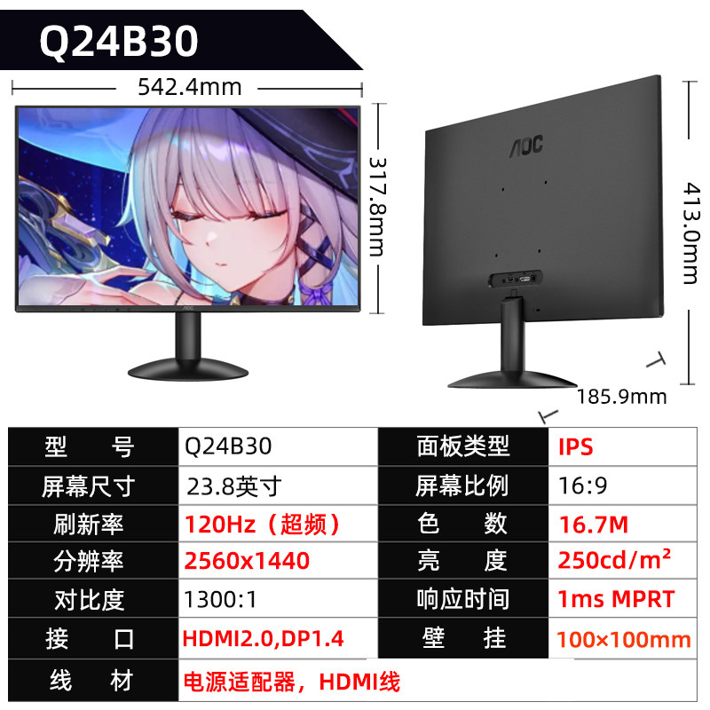 AOC Q27B30E 27寸2K高清液晶电脑显示器120Hz办公家用IPS屏Q24B30