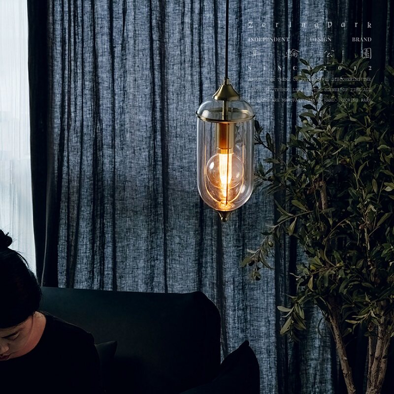 中古风卧室床头小吊灯高级感复古餐厅玄关过道新中式单头长吊线灯