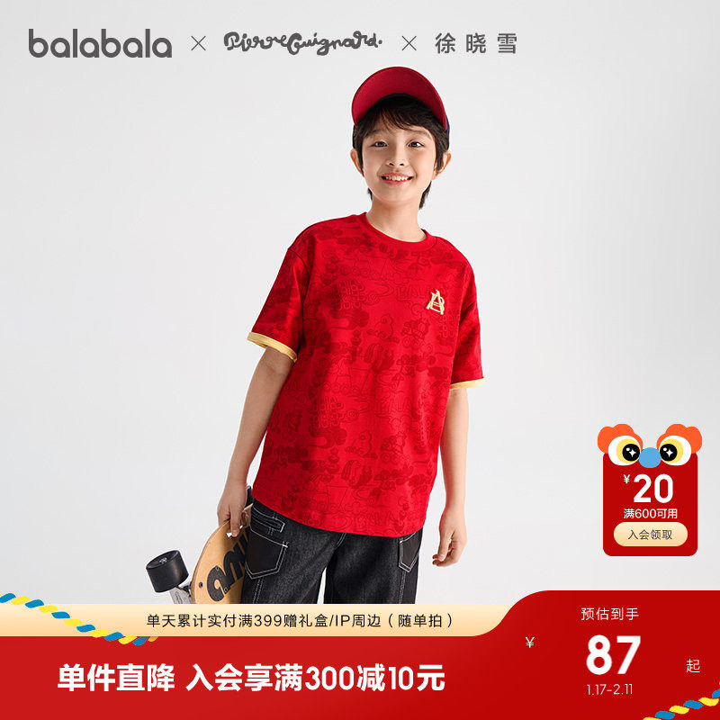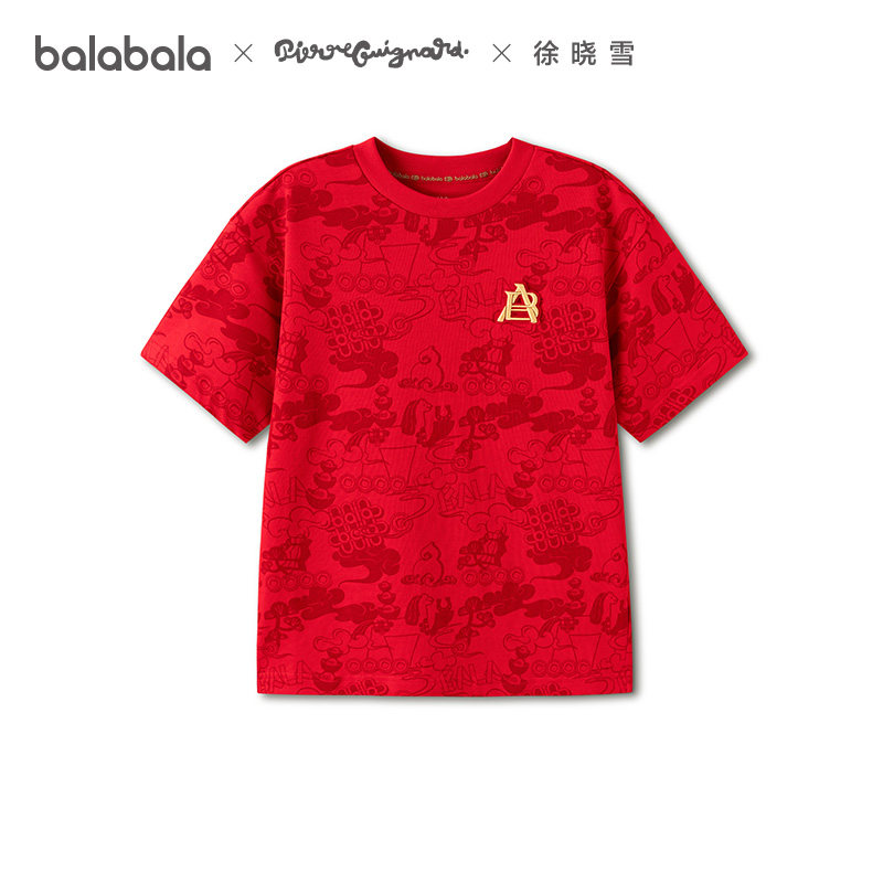 【商场同款】巴拉巴拉童装儿童短袖t恤男童2026春季新款红色上衣