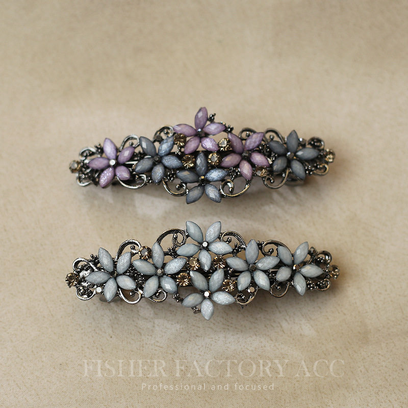 新款复古优雅弹簧夹合金发夹水钻马尾夹头饰简约后脑勺跨境批发